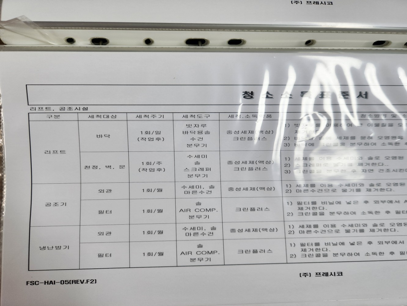 15. 벽/천장은 청결하며, 자체 청소 기준에 따라 관리되고 있는가