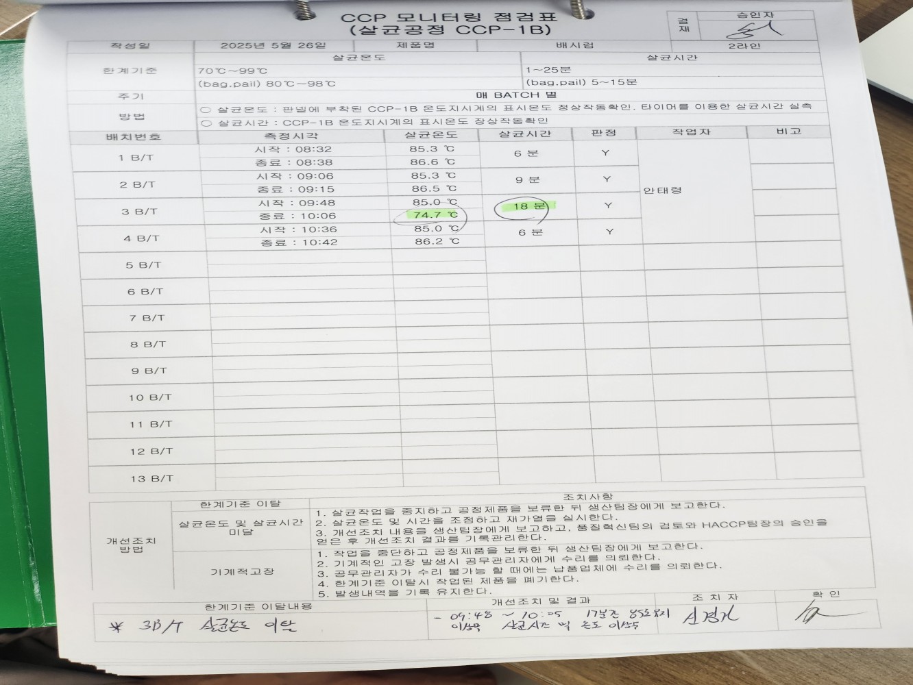 21. CCP 모니터링 및 개선 조치가 이행되고 있는가