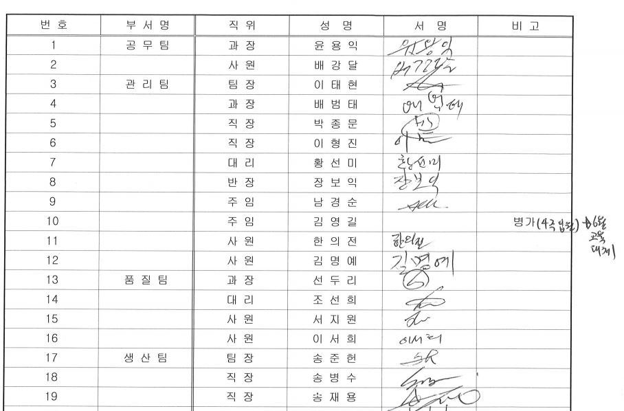 20. 전체 작업자를 대상으로 주기적으로 위생 교육이 실시되고 있는가