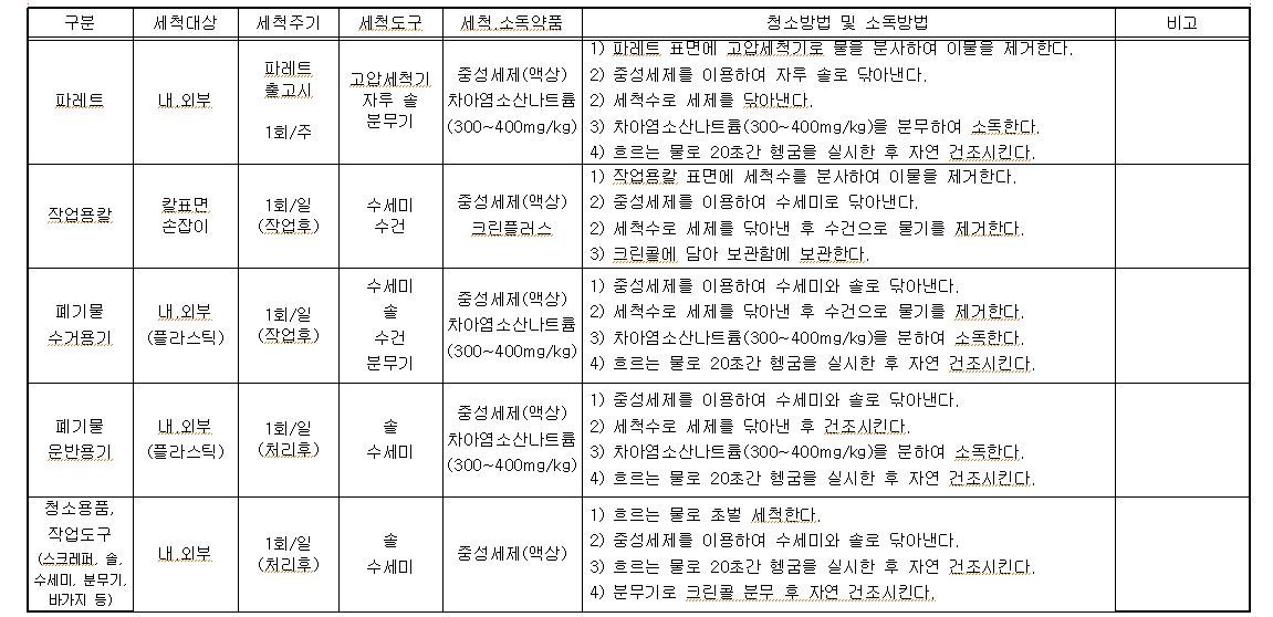 18. 시설 및 설비 등에 대한 세척/소독 관리 기준이 구비되어 있으며, 적절히 운영되는가(CIP 포함)