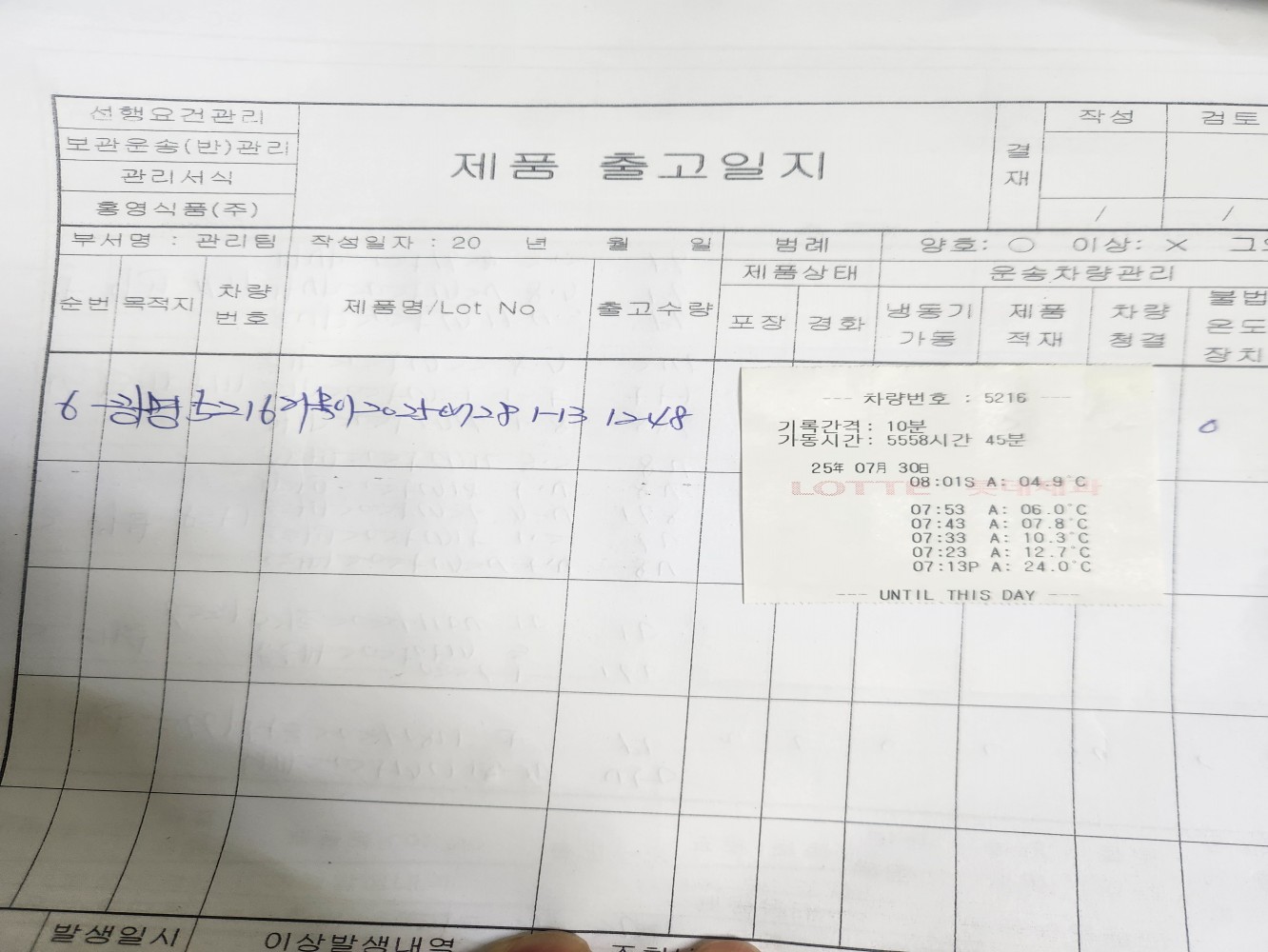 8. 운송 차량은 청결하며, 유통 온도가 관리/기록되고 있는가