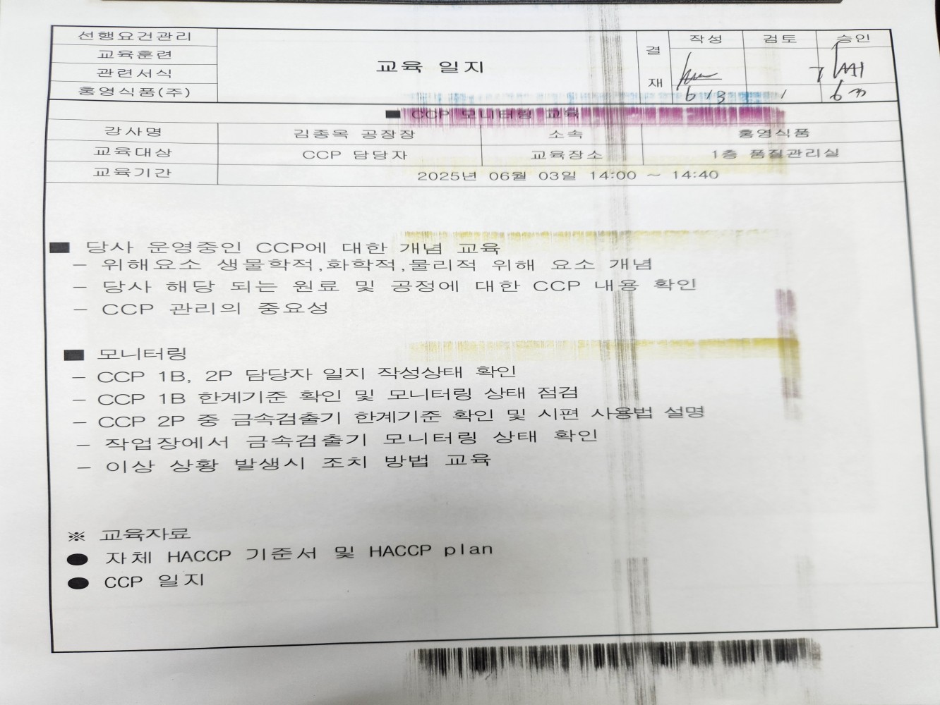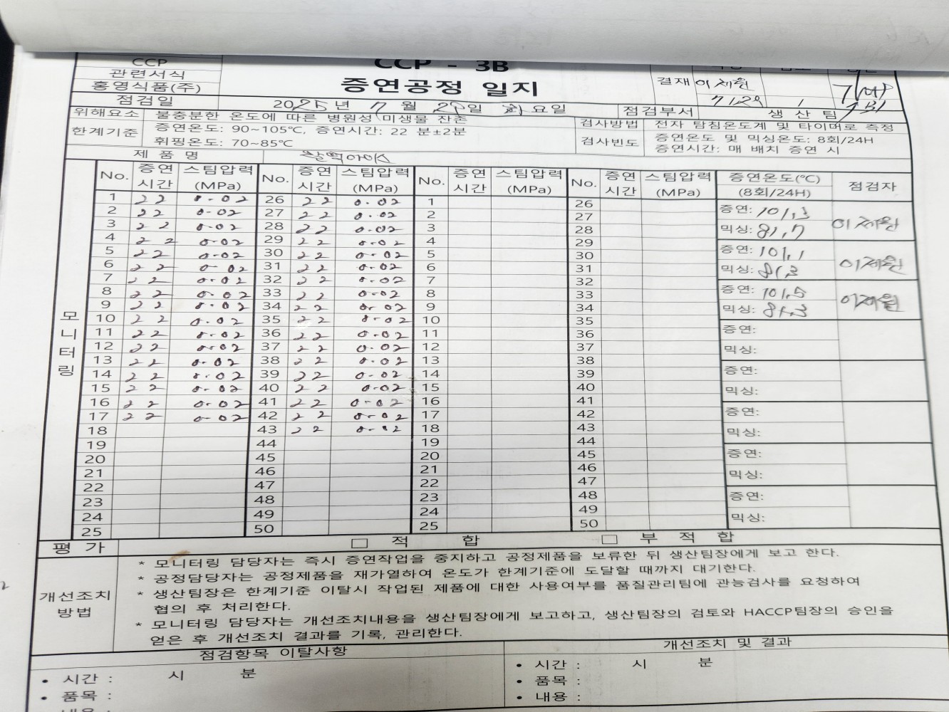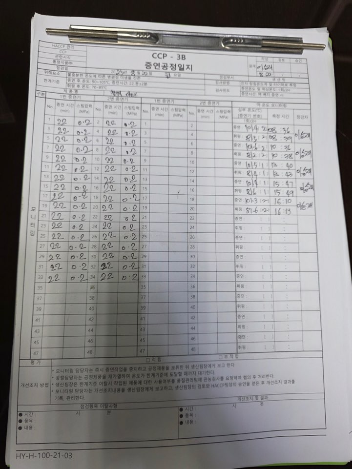 27. CCP 모니터링 및 개선 조치가 이행되고 있는가