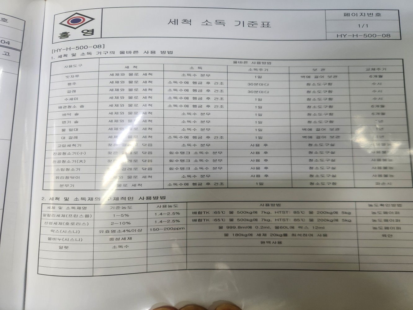 23. 세척제 및 소독제 관리 기준이 구비되어 있으며, 적절히 사용되는가