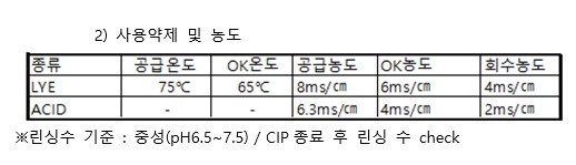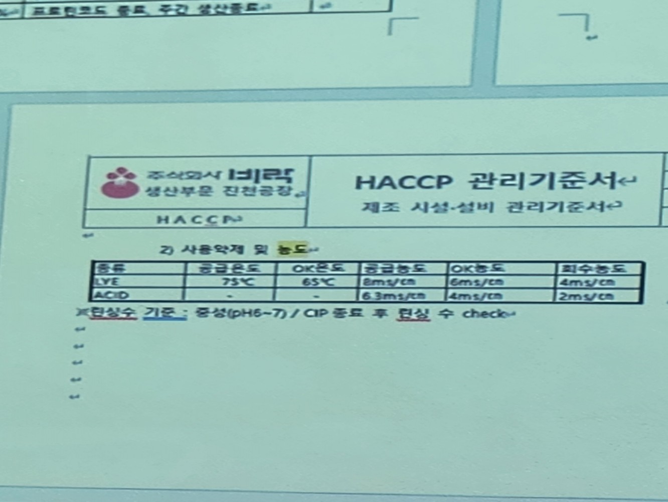 13. 시설 및 설비 등에 대한 세척/소독 관리 기준이 구비되어 있으며, 적절히 운영되는가(CIP 포함)