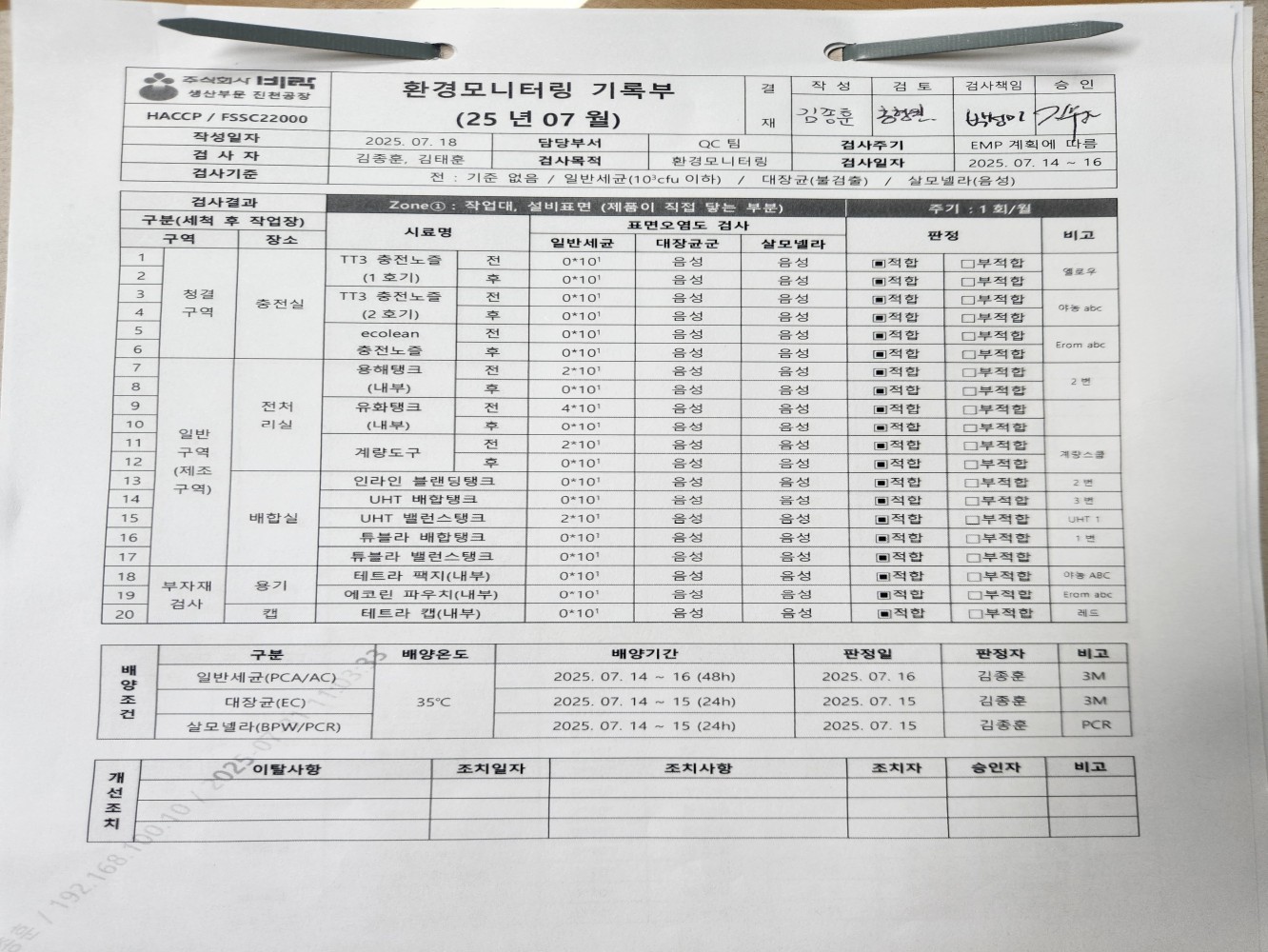 3. 이물 혼입에 대한 예방 관리가 적절히 운영되고 있는가