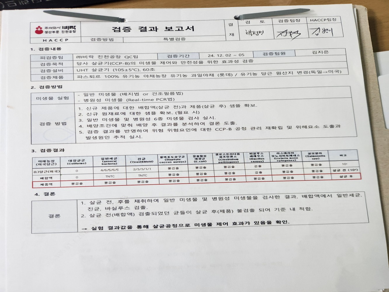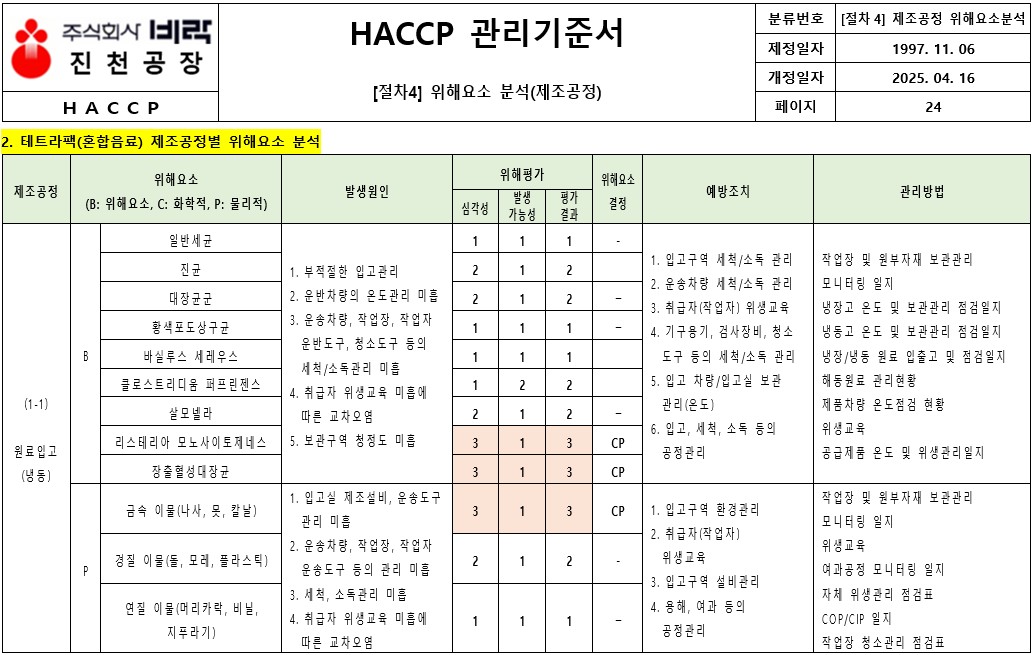 15. 원료별, 공정별 위해요소 분석이 실시되었으며, CCP 결정 및 운영이 적정한가