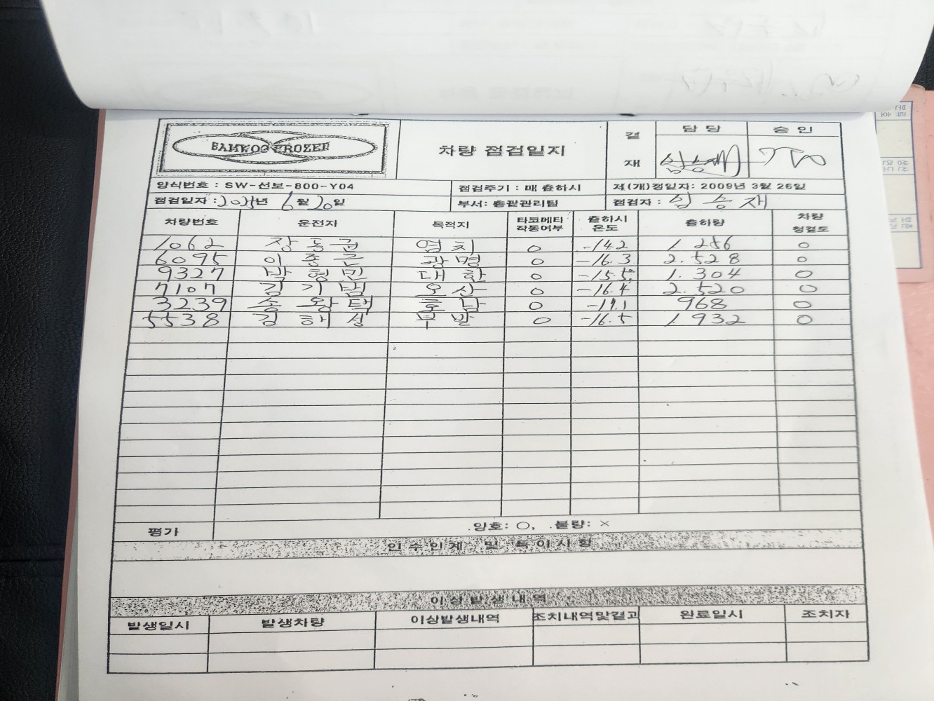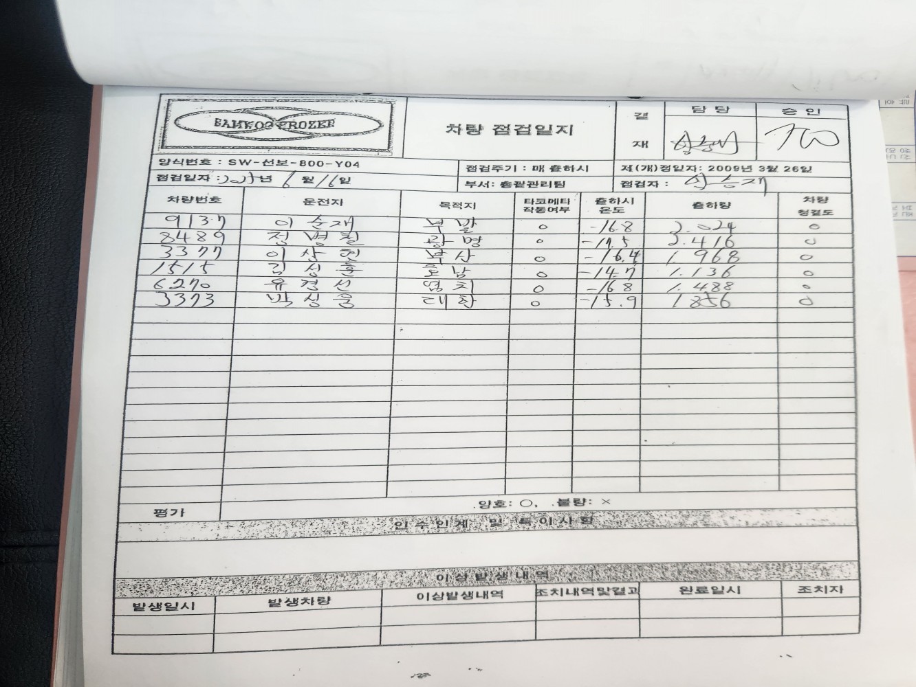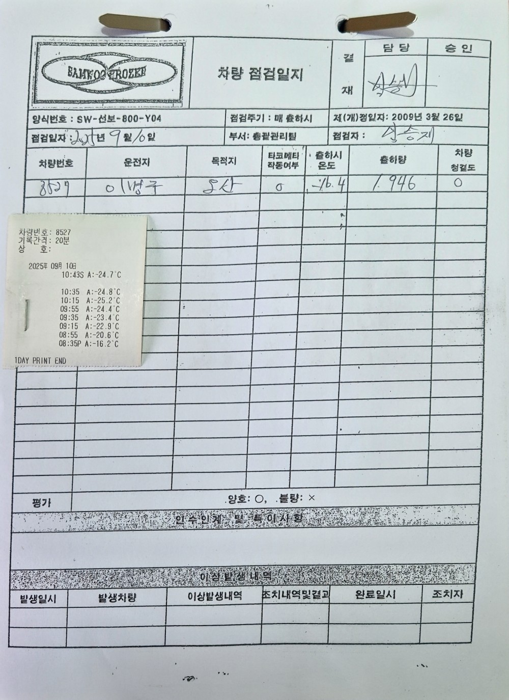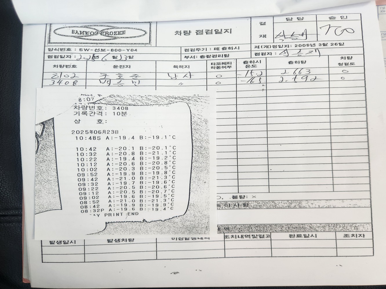 6. 운송 차량은 청결하며, 유통 온도가 관리/기록되고 있는가