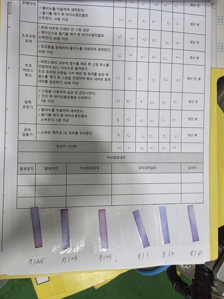 7. 이물 검출 장비가 구비되어 있으며, 적절히 운영되고 있는가