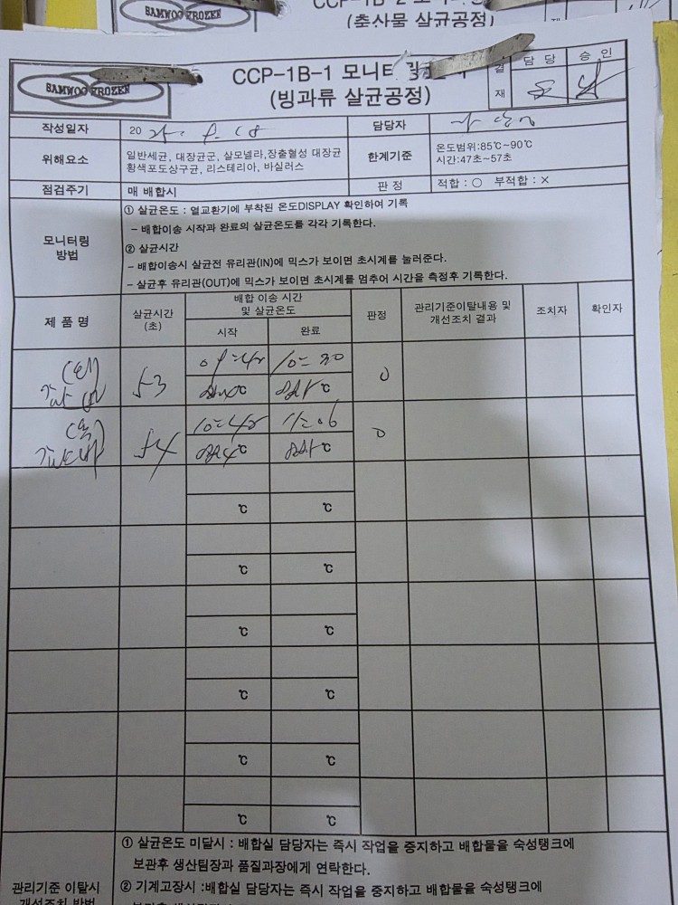 21. CCP 모니터링 및 개선 조치가 이행되고 있는가