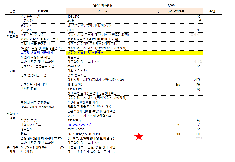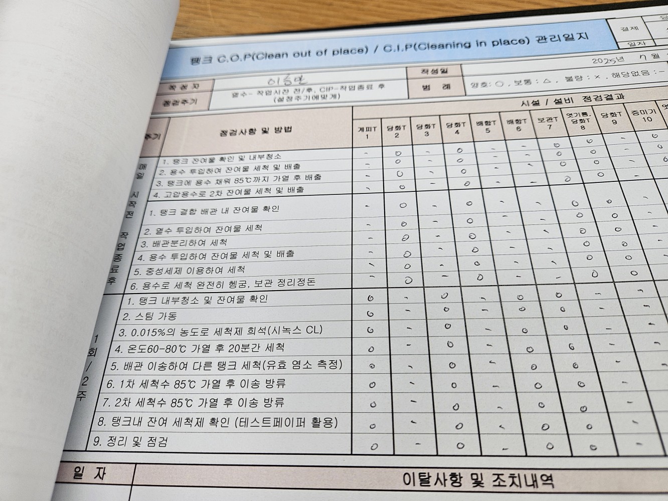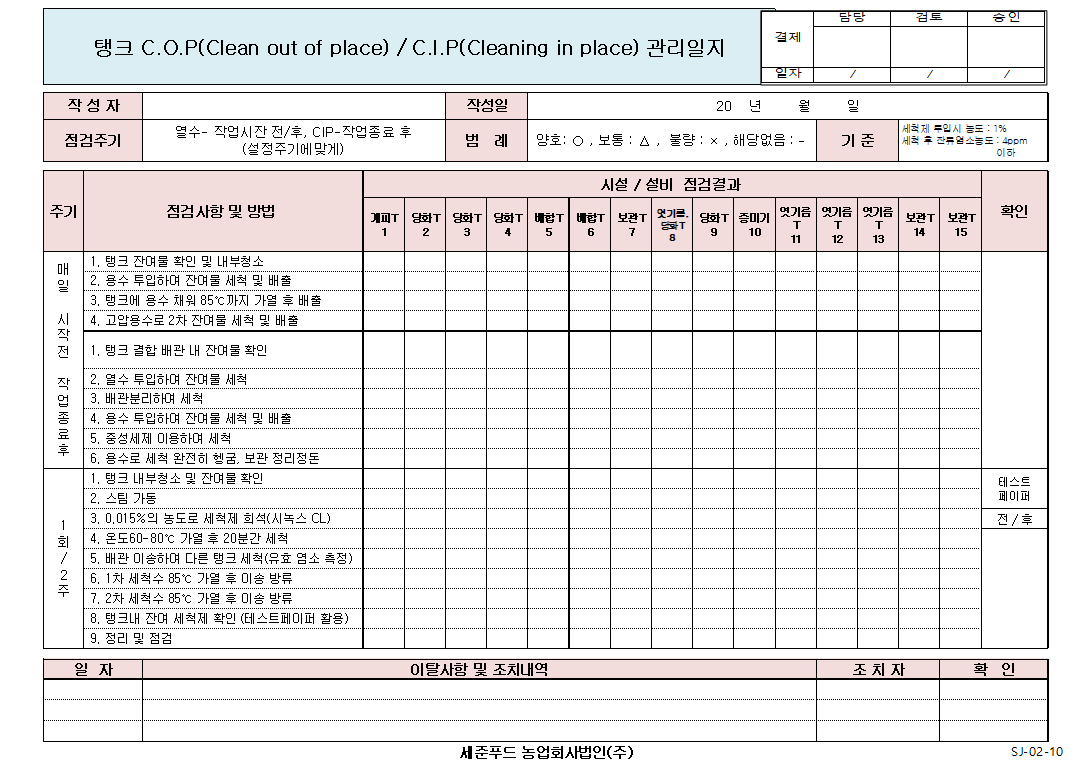 24. 시설 및 설비 등에 대한 세척/소독 관리 기준이 구비되어 있으며, 적절히 운영되는가(CIP 포함)