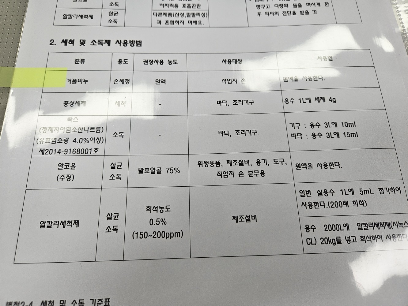 4. 화학물질은 식품 등과 이격되고, 안전하게 보관되고 있는가