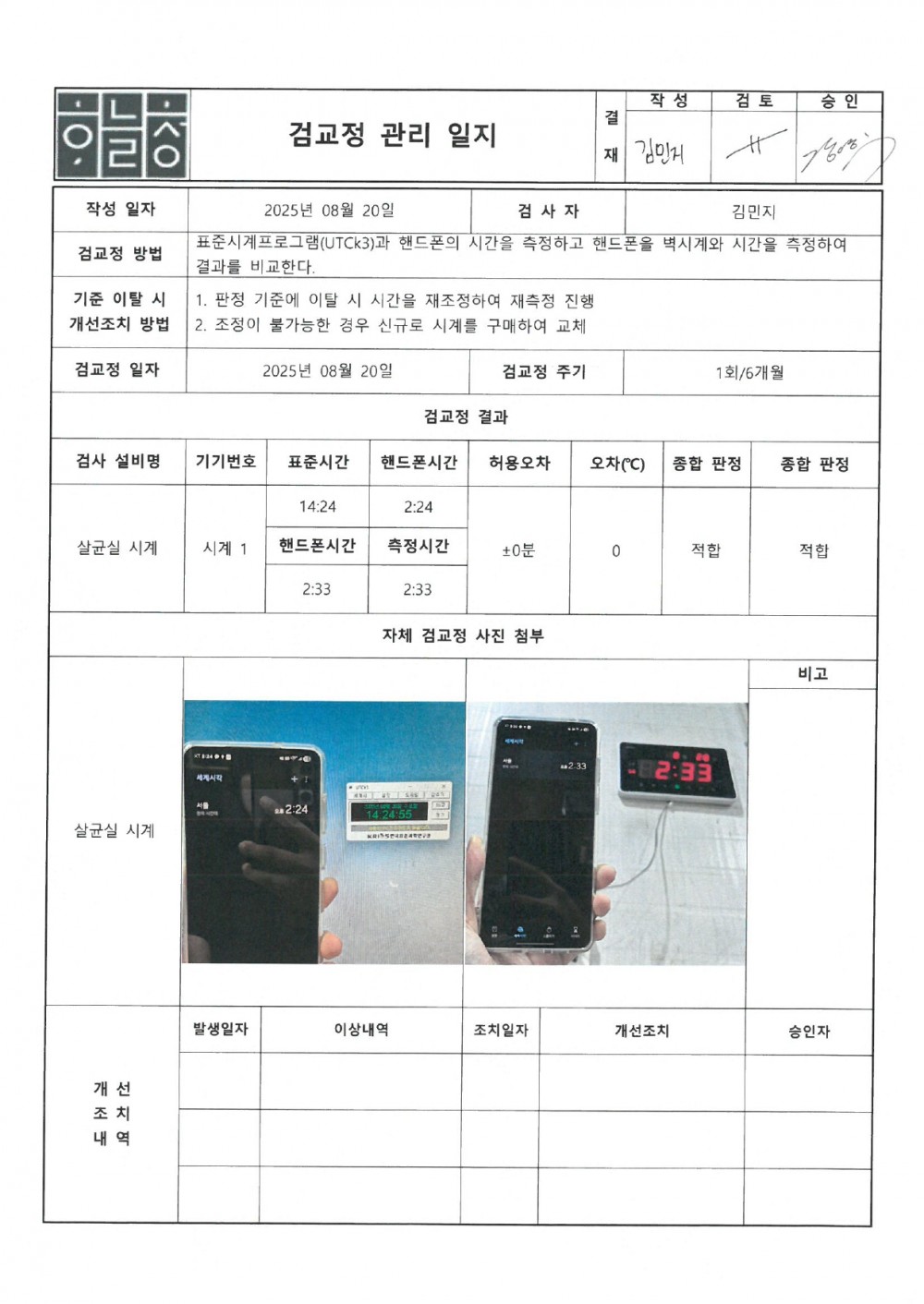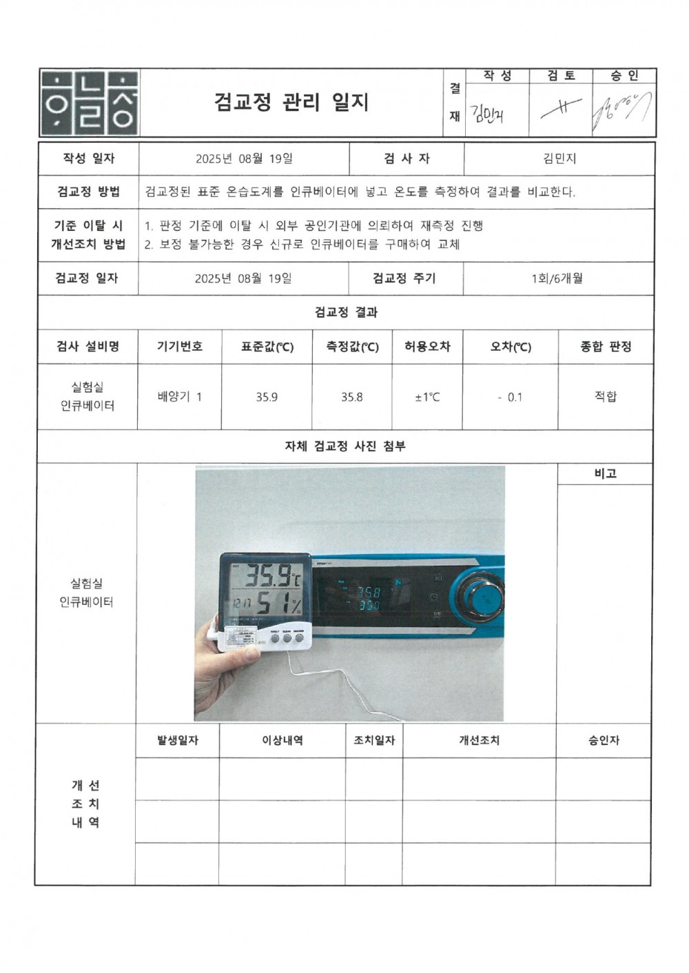 9. 검사용 설비는 주기적으로 검교정되며, 시약 등이 관리되고 있는가