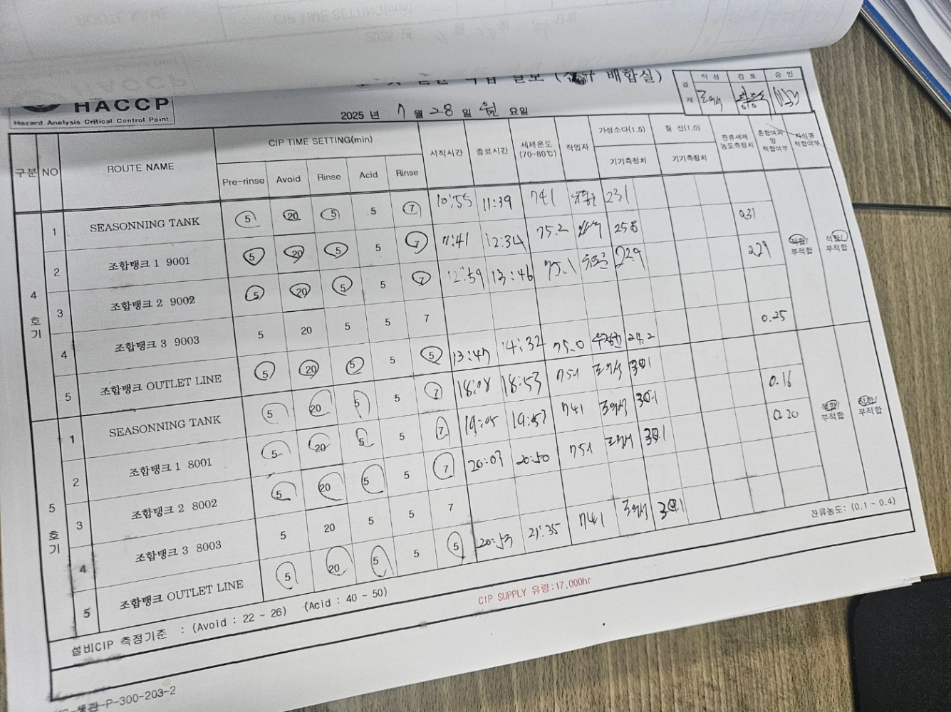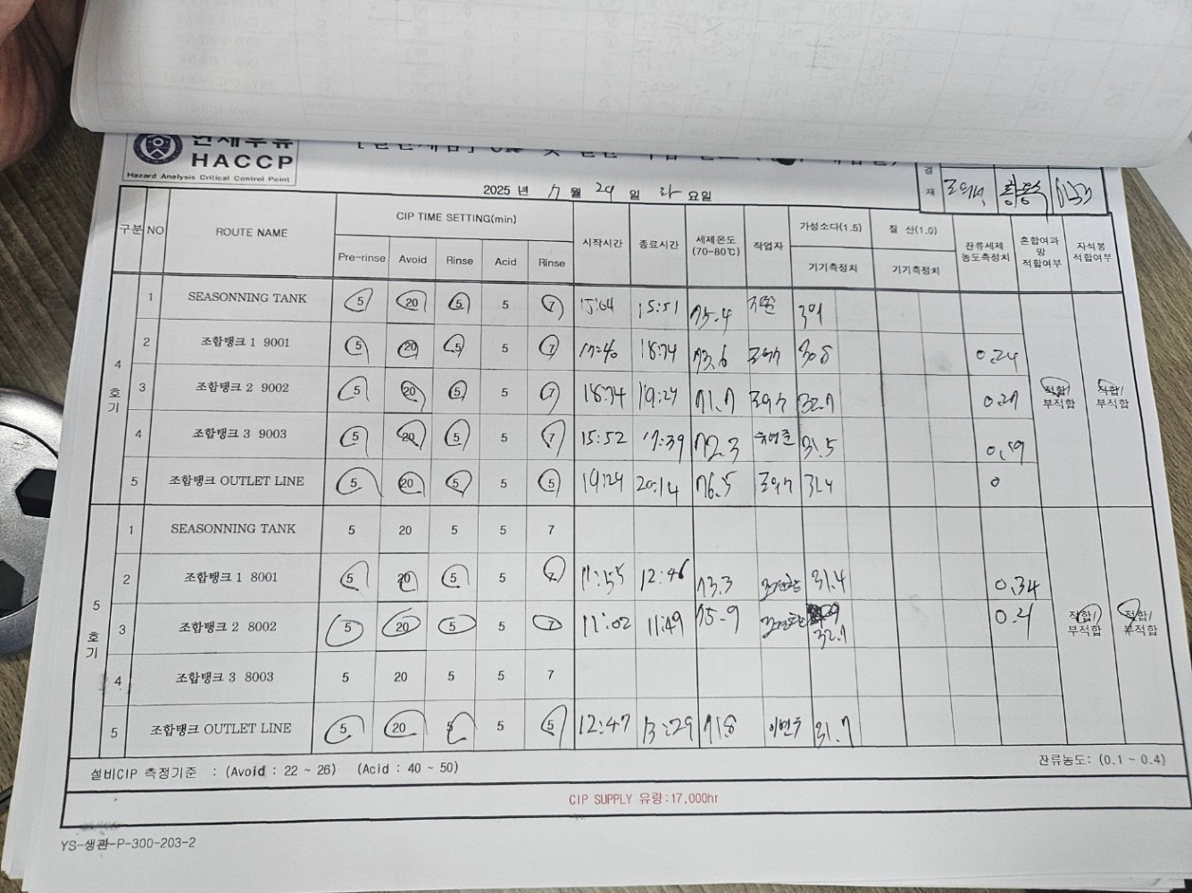 19. 시설 및 설비 등에 대한 세척/소독 관리 기준이 구비되어 있으며, 적절히 운영되는가(CIP 포함)