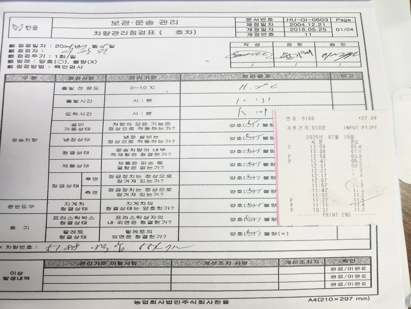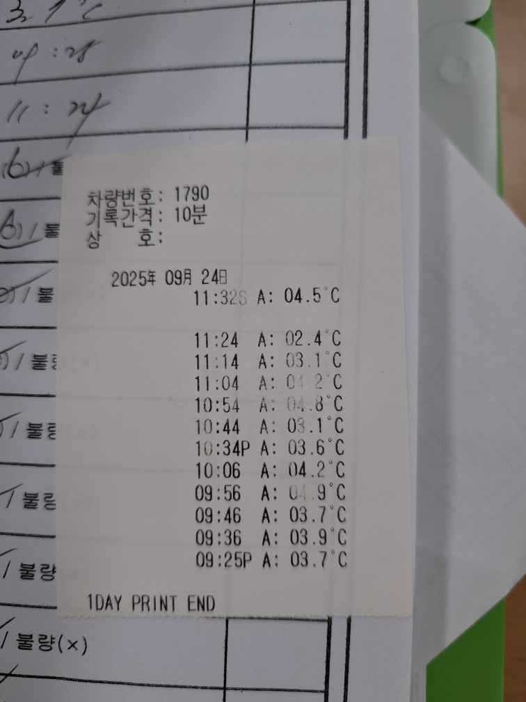 7. 운송 차량은 청결하며, 유통 온도가 관리/기록되고 있는가