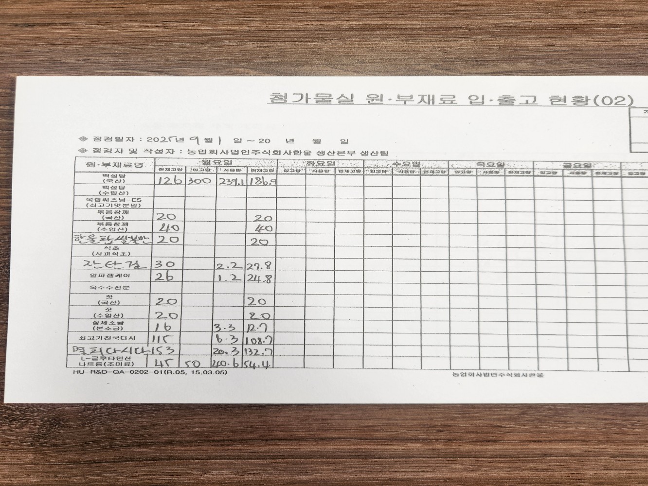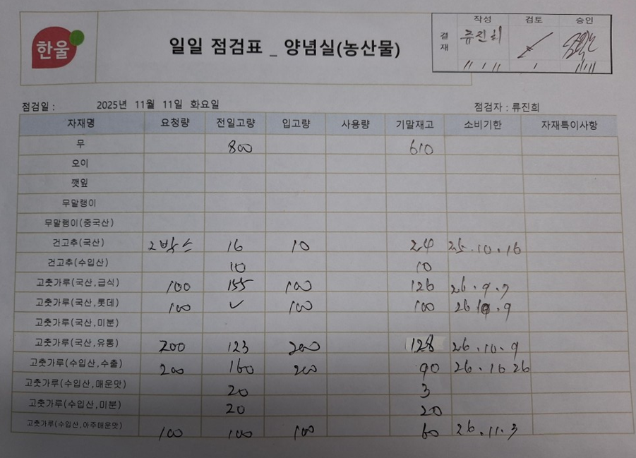 3. 보관/사용 대기 중인 원료 등의 식별표시가 적정한가(반제품, 공정품 포함)