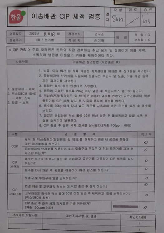 25. 세척 및 소독 효과가 주기적으로 검증되는가(환경 모니터링 포함)