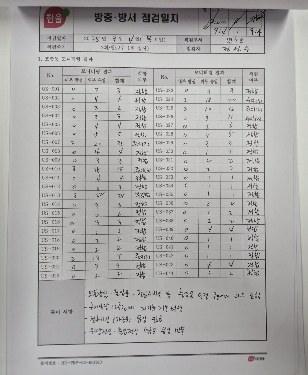 15. 방충/방서 관리 기준이 구비되어 있으며, 적절히 관리되는가