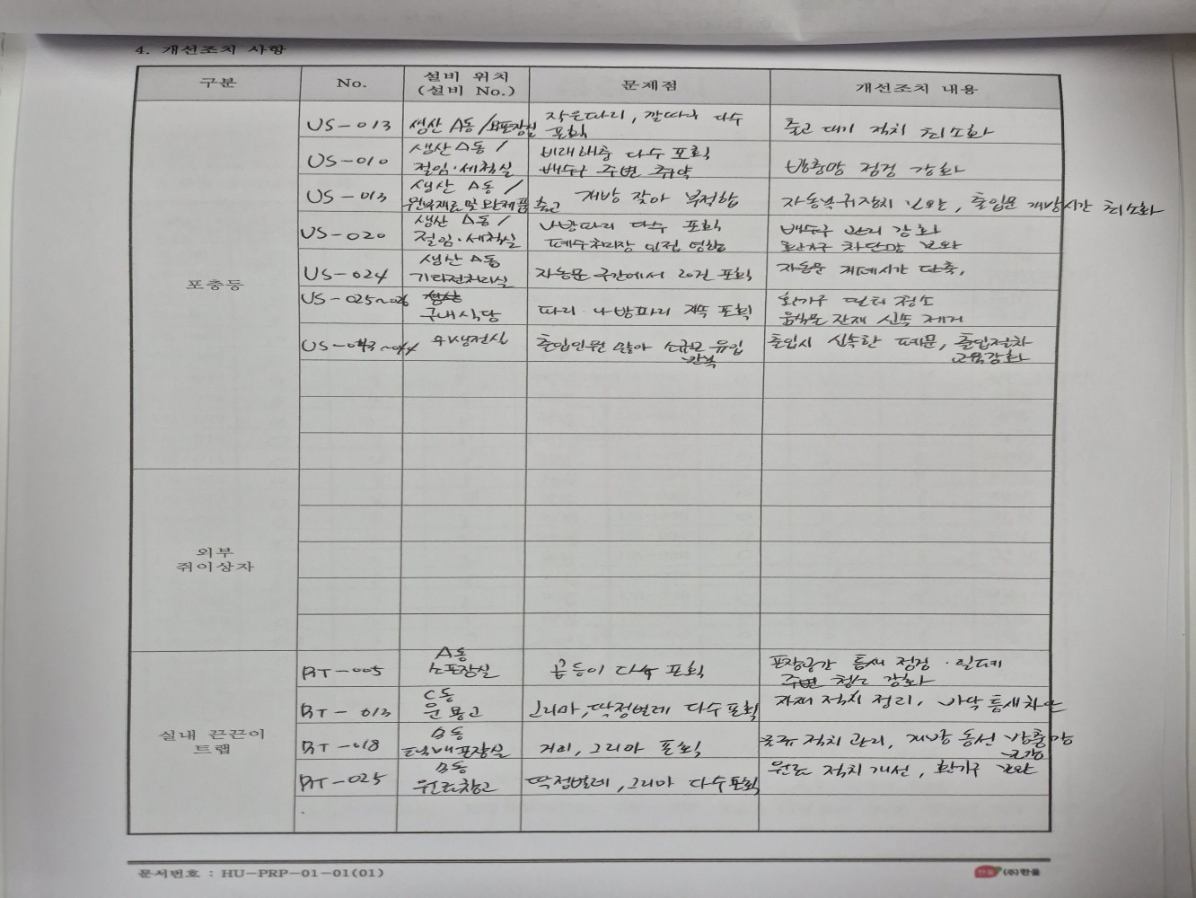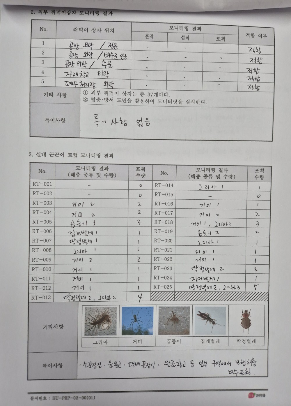 17. 작업장 내 해충 및 해충 흔적이 관찰되는가