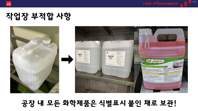 1. 화학물질은 식품 등과 이격되고, 안전하게 보관되고 있는가