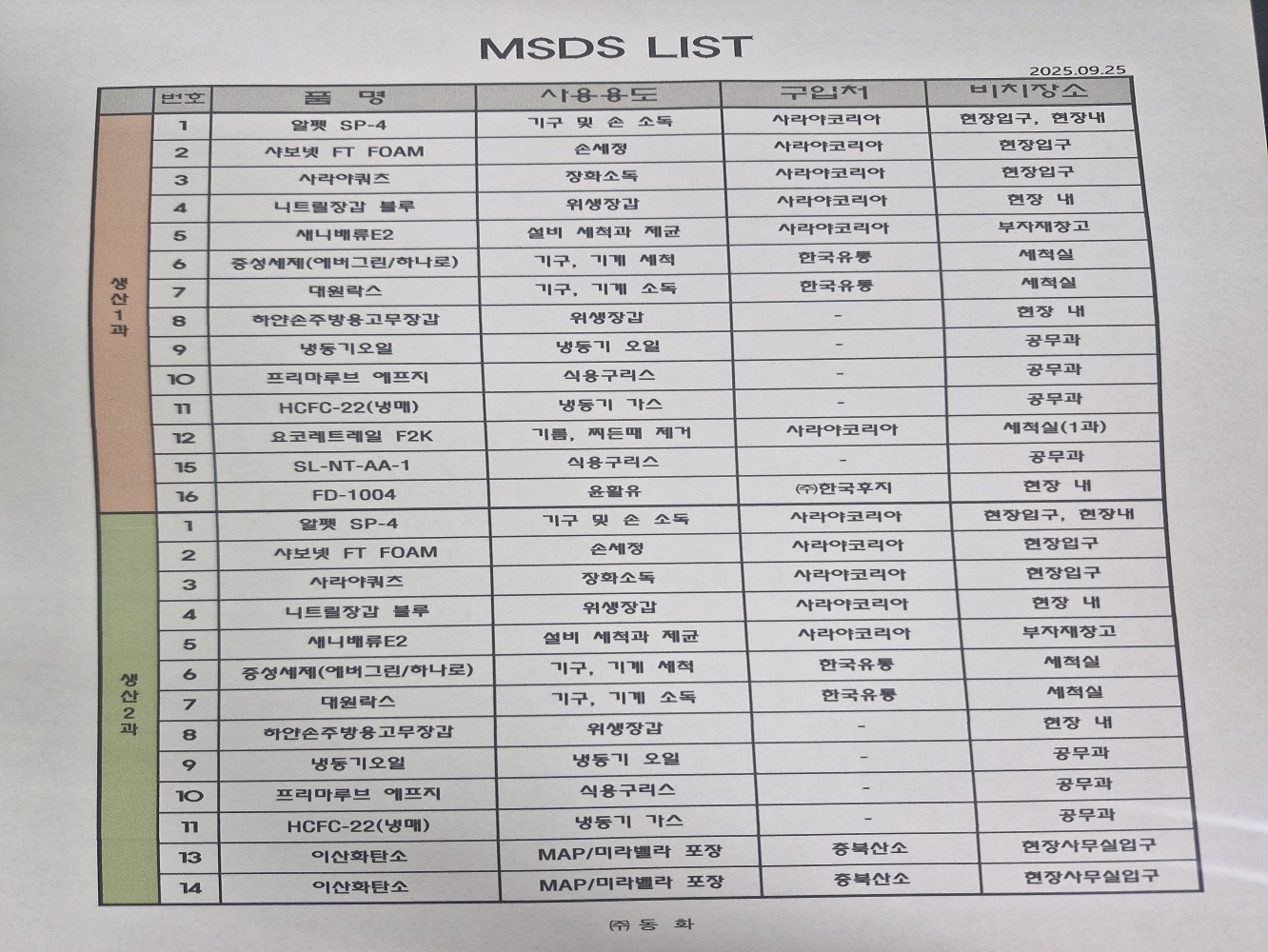 2. 보관/사용 대기 중인 원료 등의 식별표시가 적정한가(반제품, 공정품 포함)