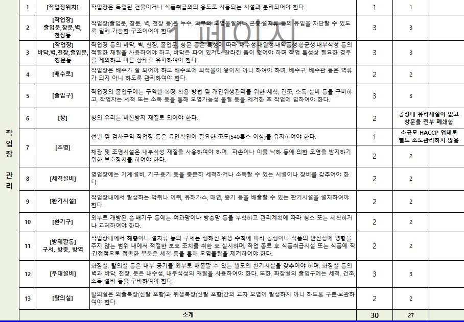 12. 작업장 내 해충 및 해충 흔적이 관찰되는가
