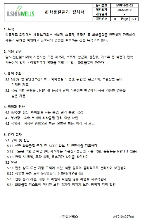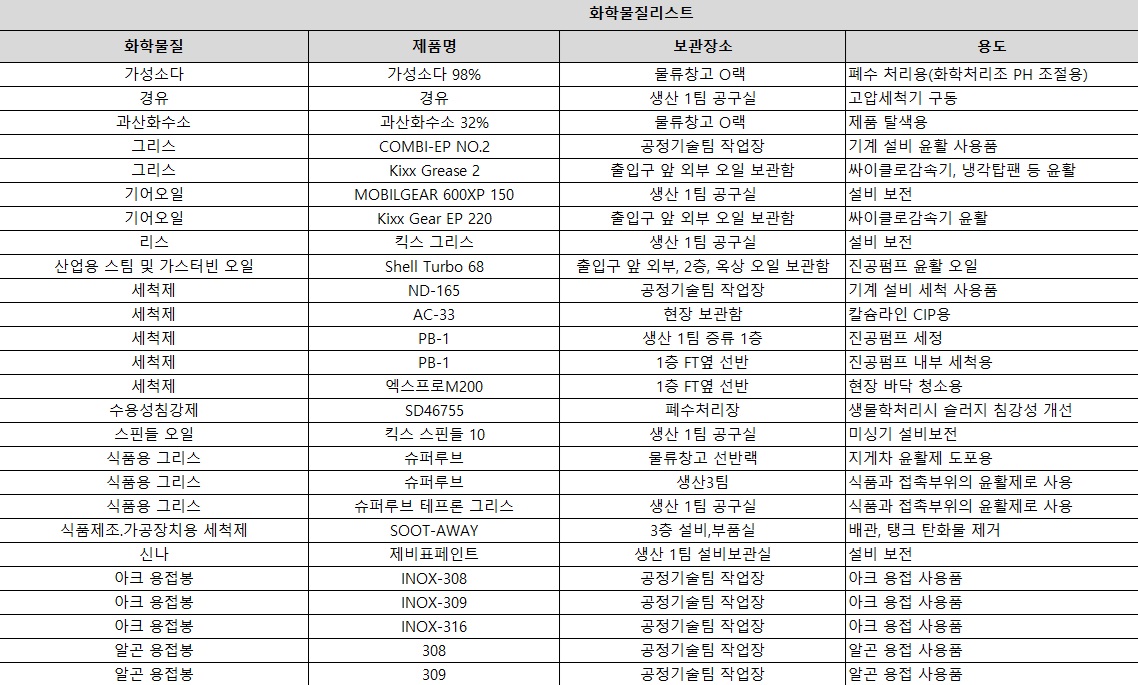 2. 화학물질은 식품 등과 이격되고, 안전하게 보관되고 있는가