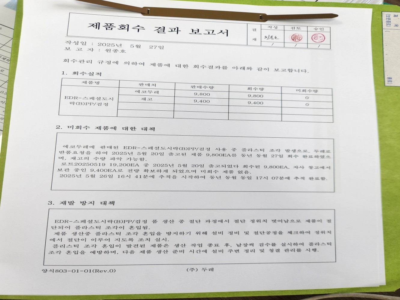 5. 이물 관리 절차가 구비되어 있으며 적절히 운영되고 있는가
