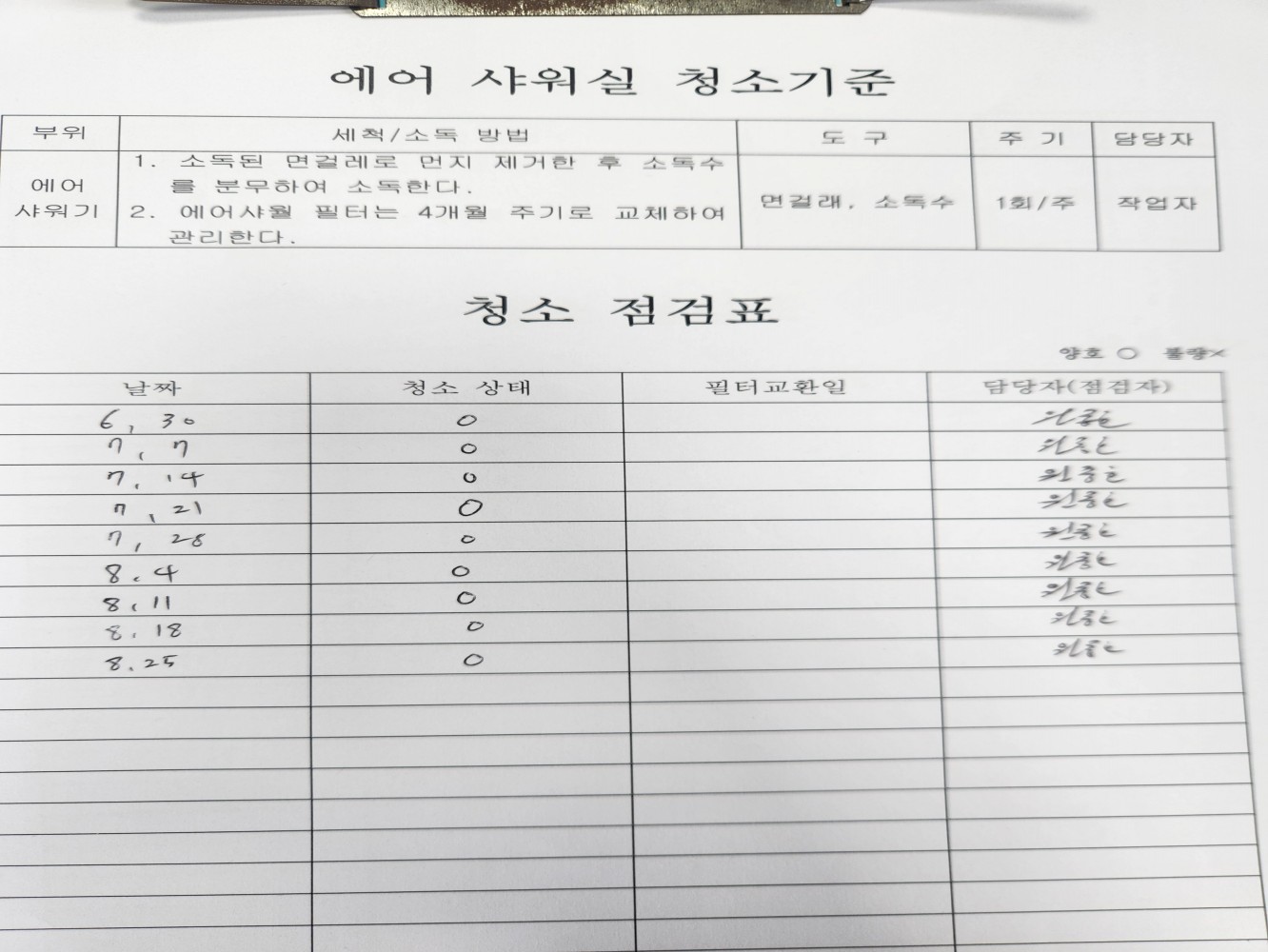 15. 시설 및 설비 등에 대한 세척/소독 관리 기준이 구비되어 있으며, 적절히 운영되는가