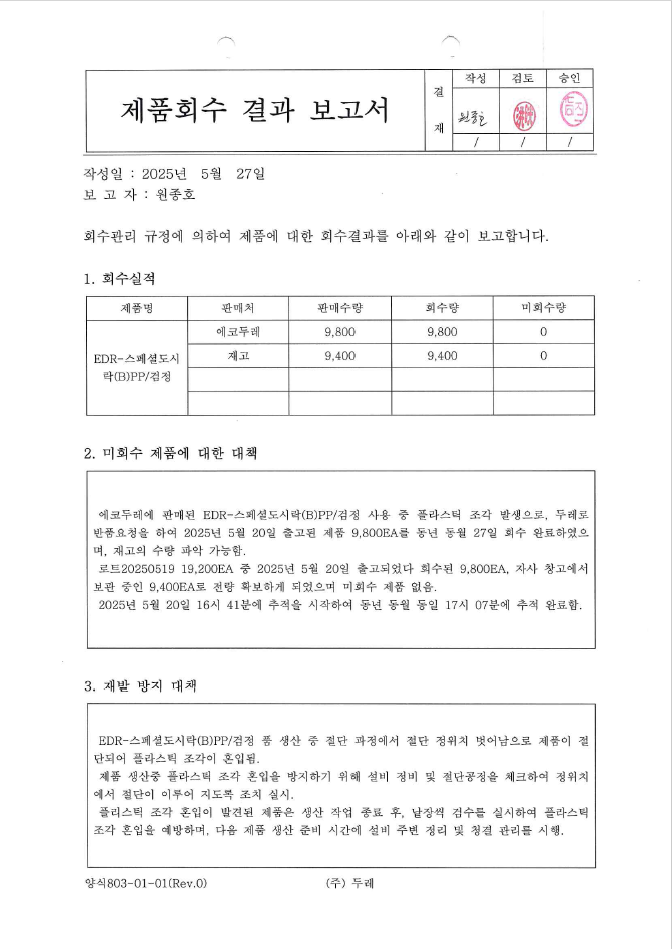 4. 회수 관리 기준이 구비되어 있으며, 모의 회수가 적절히 실시되고 있는가