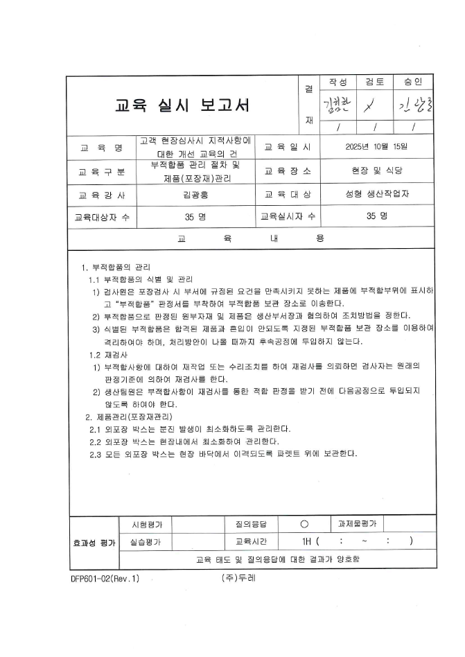 7. 부적합 제품 관리 시스템이 구비되어 있으며 적절히 운영되는가