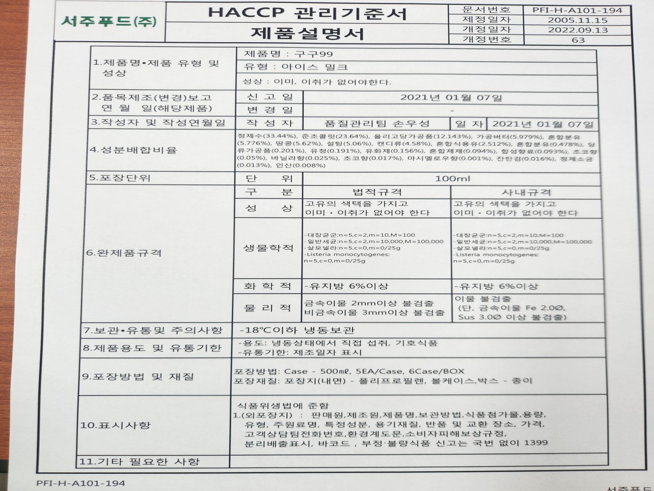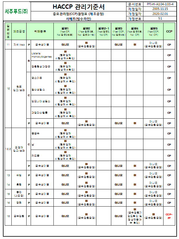 27. 원료별, 공정별 위해요소 분석이 실시되었으며, CCP 결정 및 운영이 적정한가