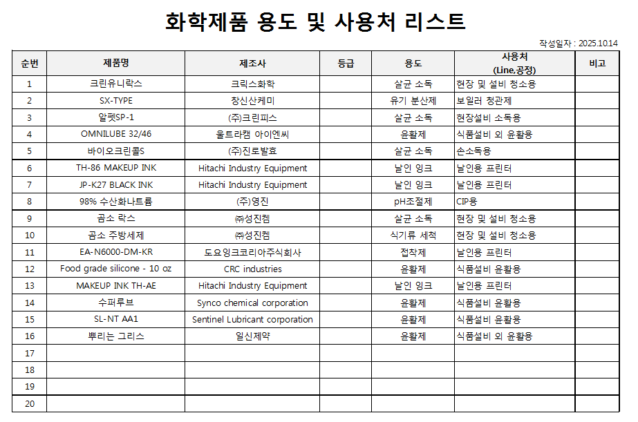 4. 화학물질은 식품 등과 이격되고, 안전하게 보관되고 있는가