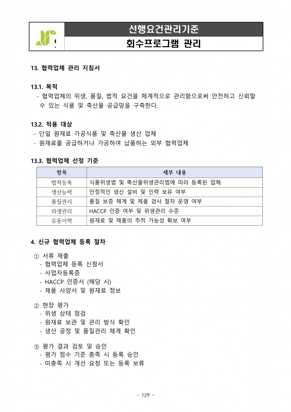 1. 공급자 평가 관리 시스템이 구비되어 있으며, 적절히 운영되는가