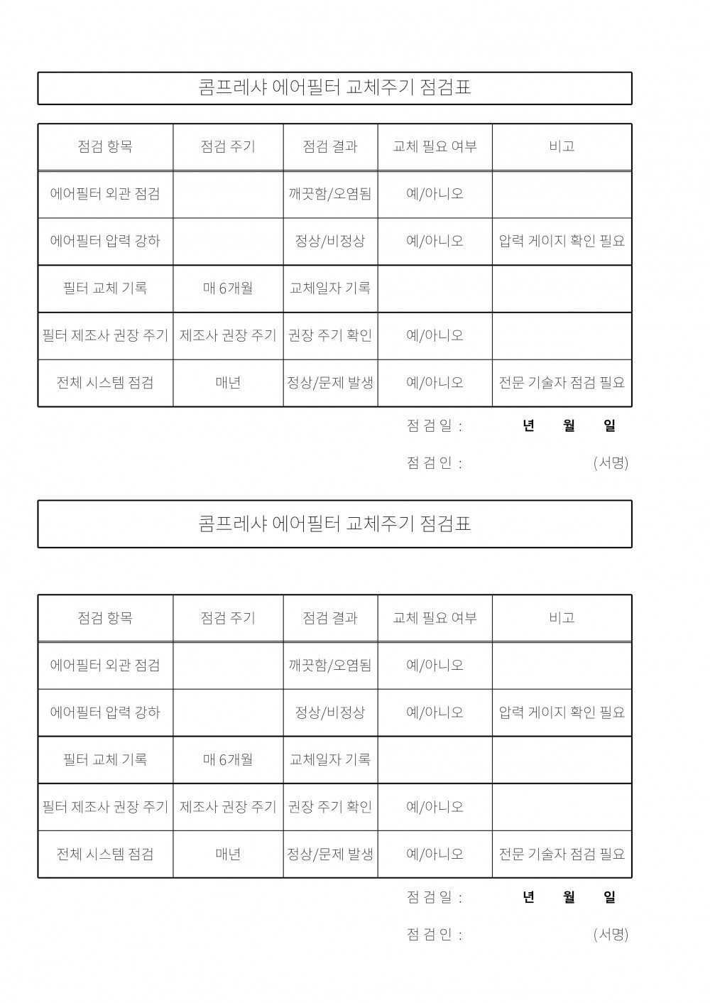 10. 압축 공기의 관리 기준이 구비되어 있으며, 적절히 사용되는가