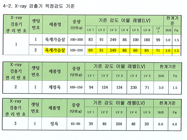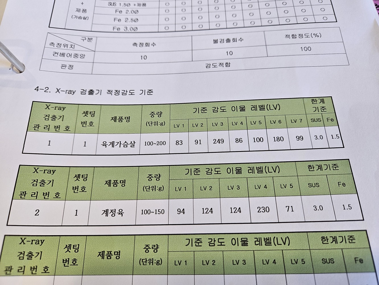 4. 이물 검출 장비가 구비되어 있으며, 적절히 운영되고 있는가
