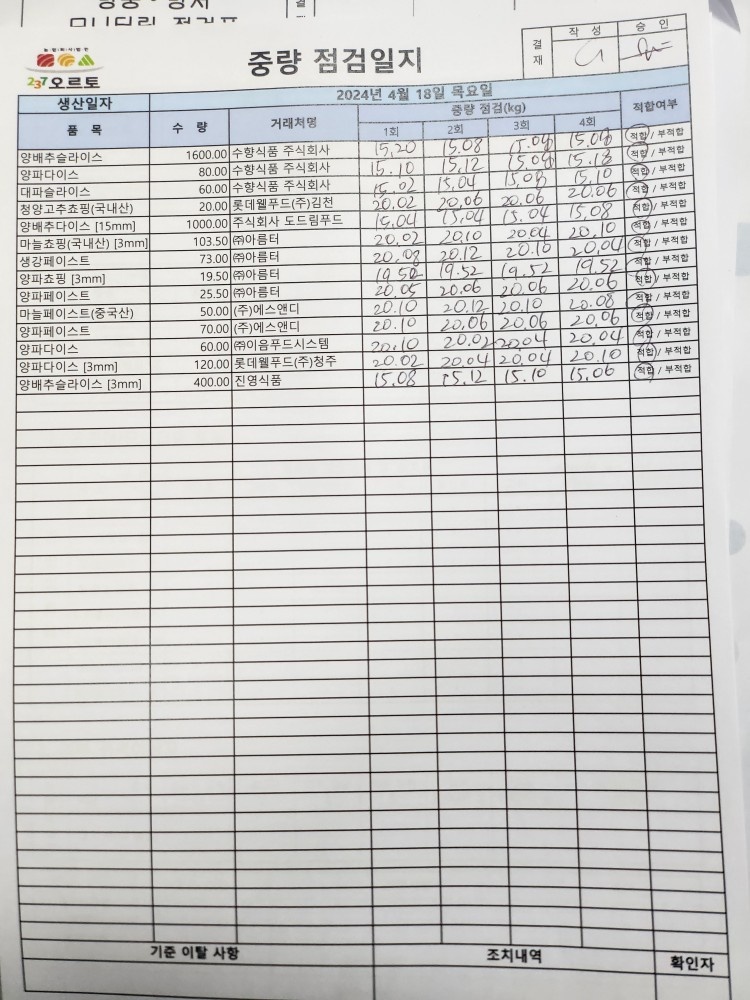 4. 제품별 제조 공정 기준을 준수하고 있는가