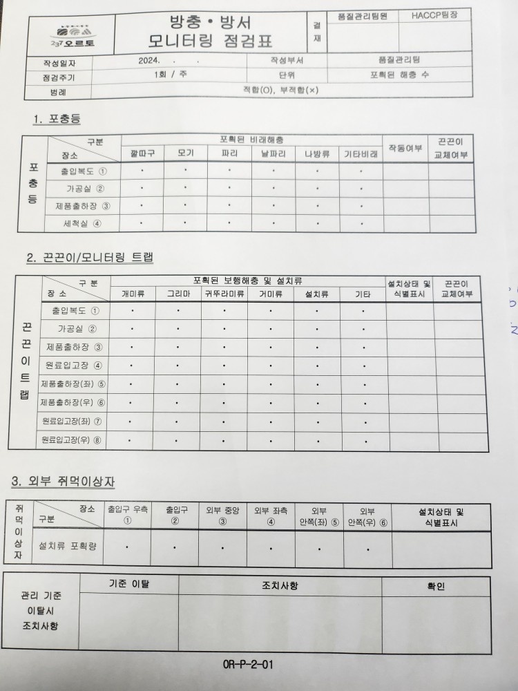 17. 방충/방서 관리 기준이 구비되어 있으며, 적절히 이행되는가