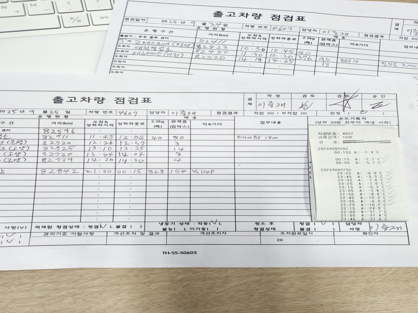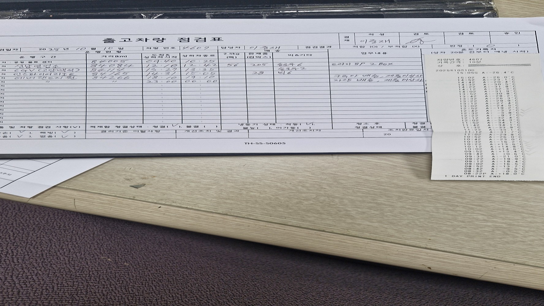 1. 운송 차량은 청결하며, 유통 온도가 관리/기록되고 있는가