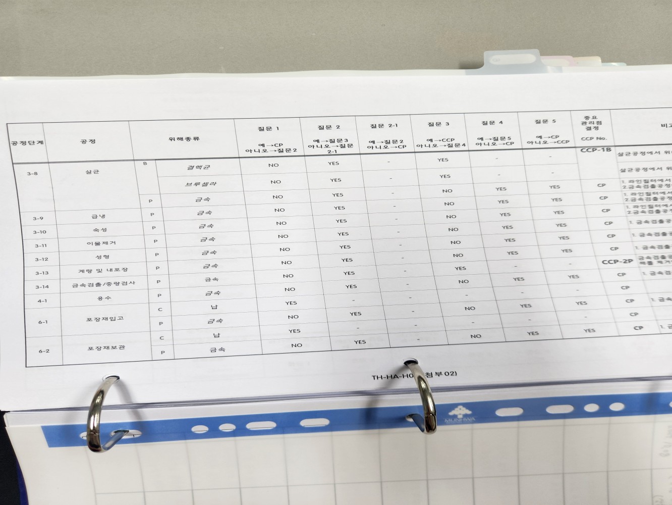 17. 원료별, 공정별 위해요소 분석이 실시되었으며, CCP 결정 및 운영이 적정한가