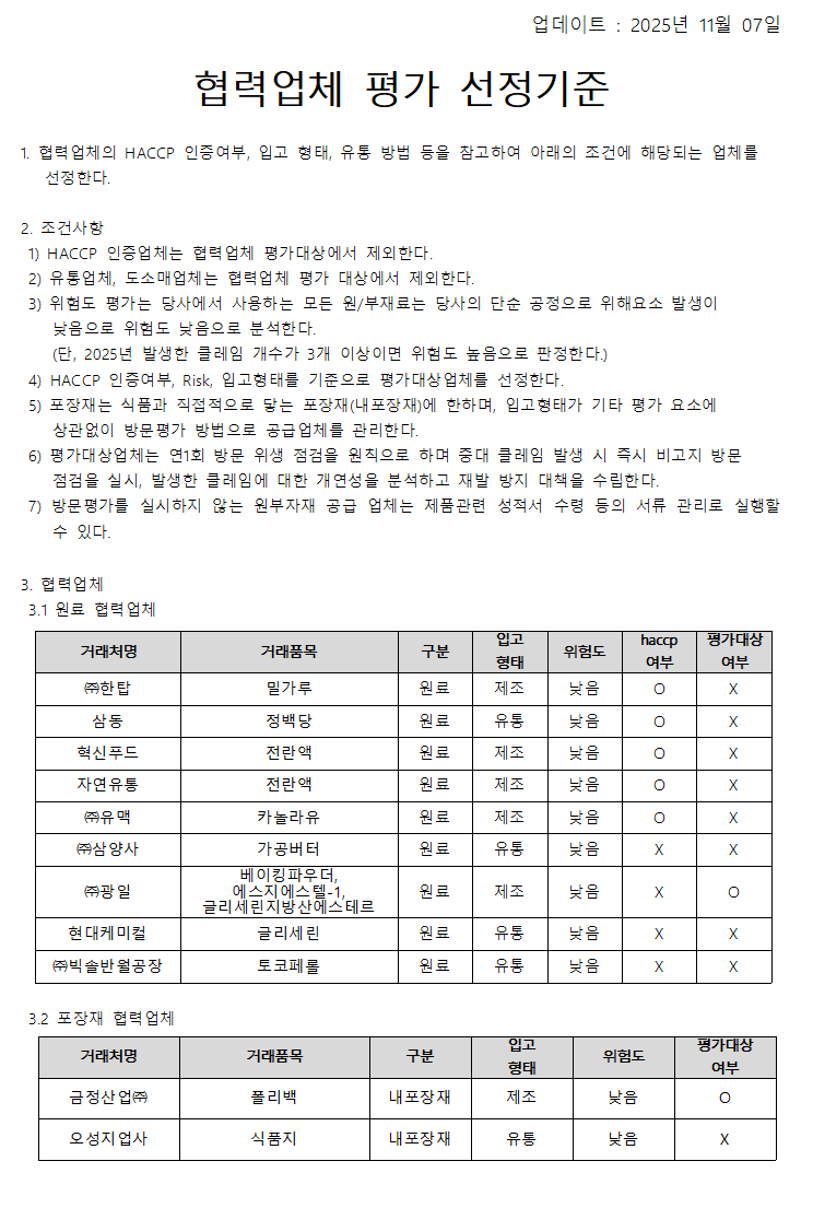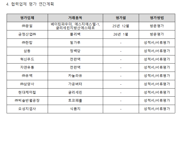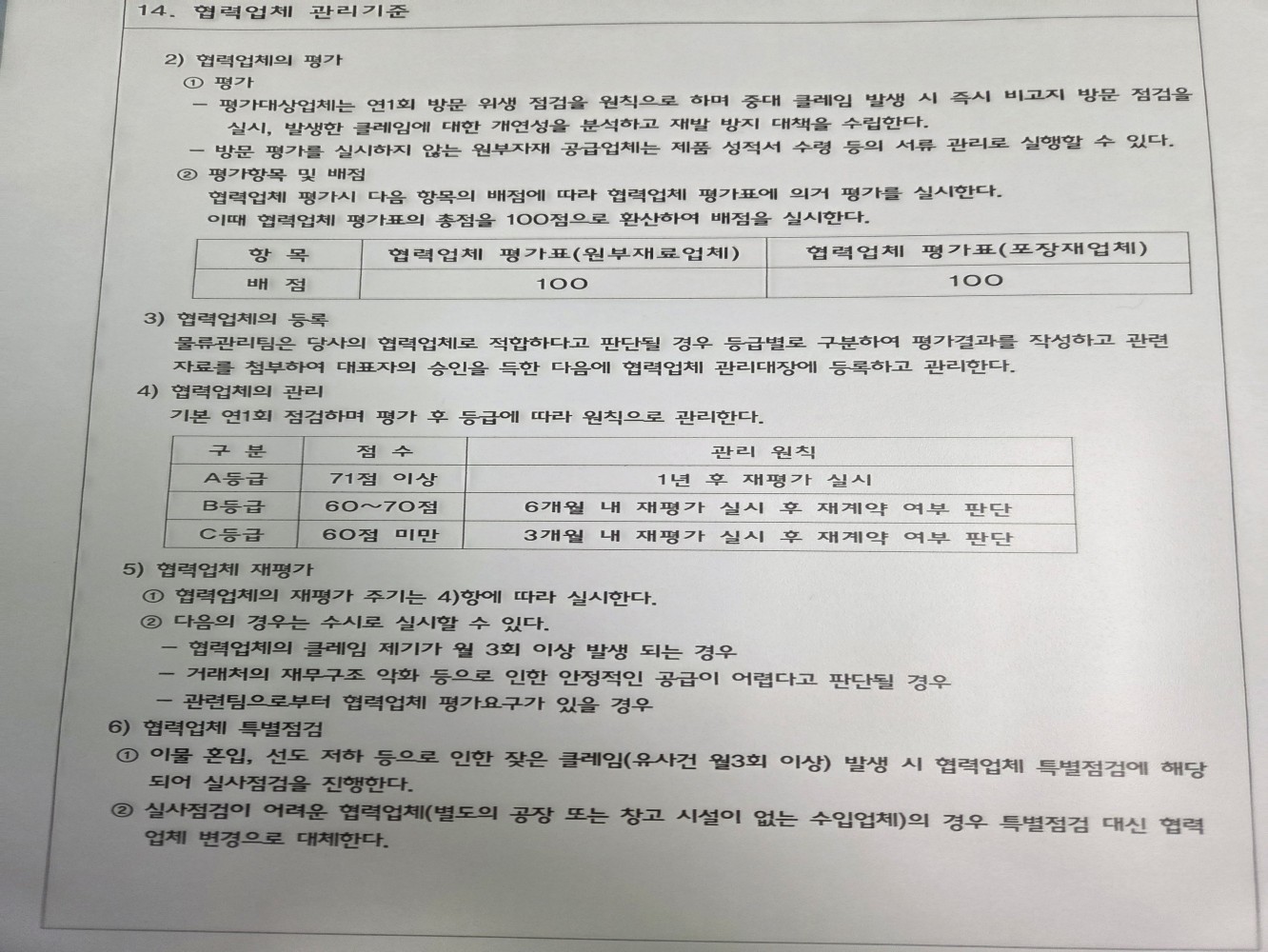 1. 공급자 평가 관리 시스템이 구비되어 있으며, 적절히 운영되는가