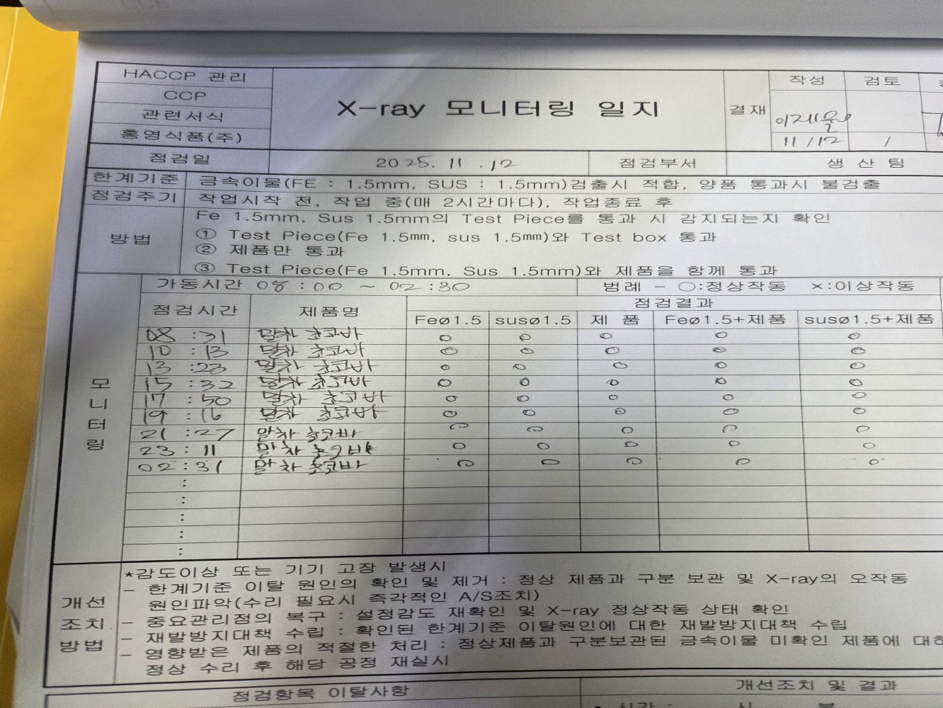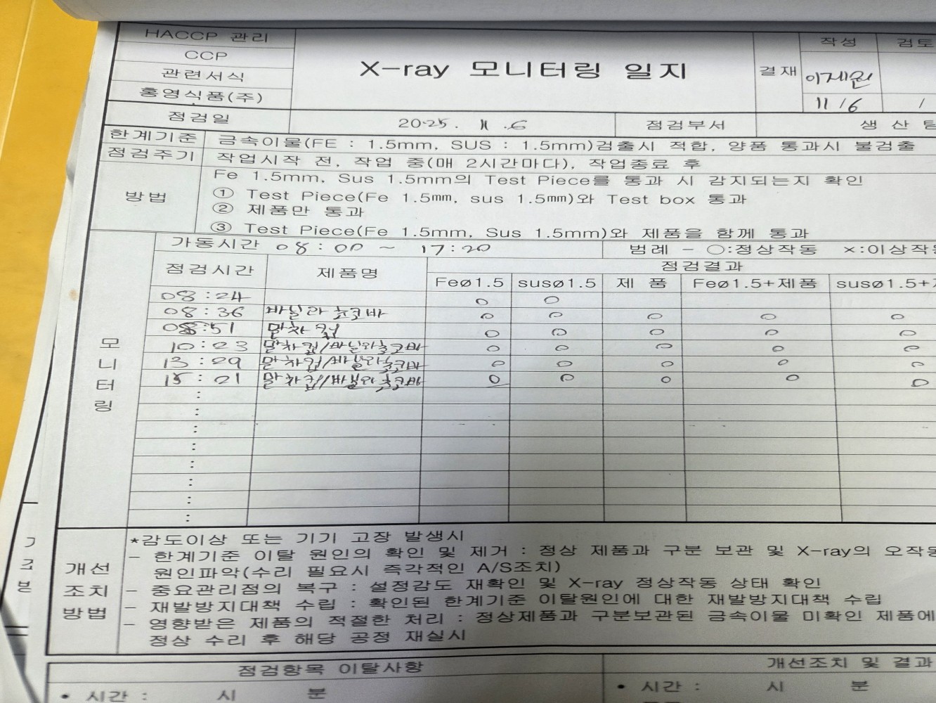 29. CCP 모니터링 및 개선 조치가 이행되고 있는가