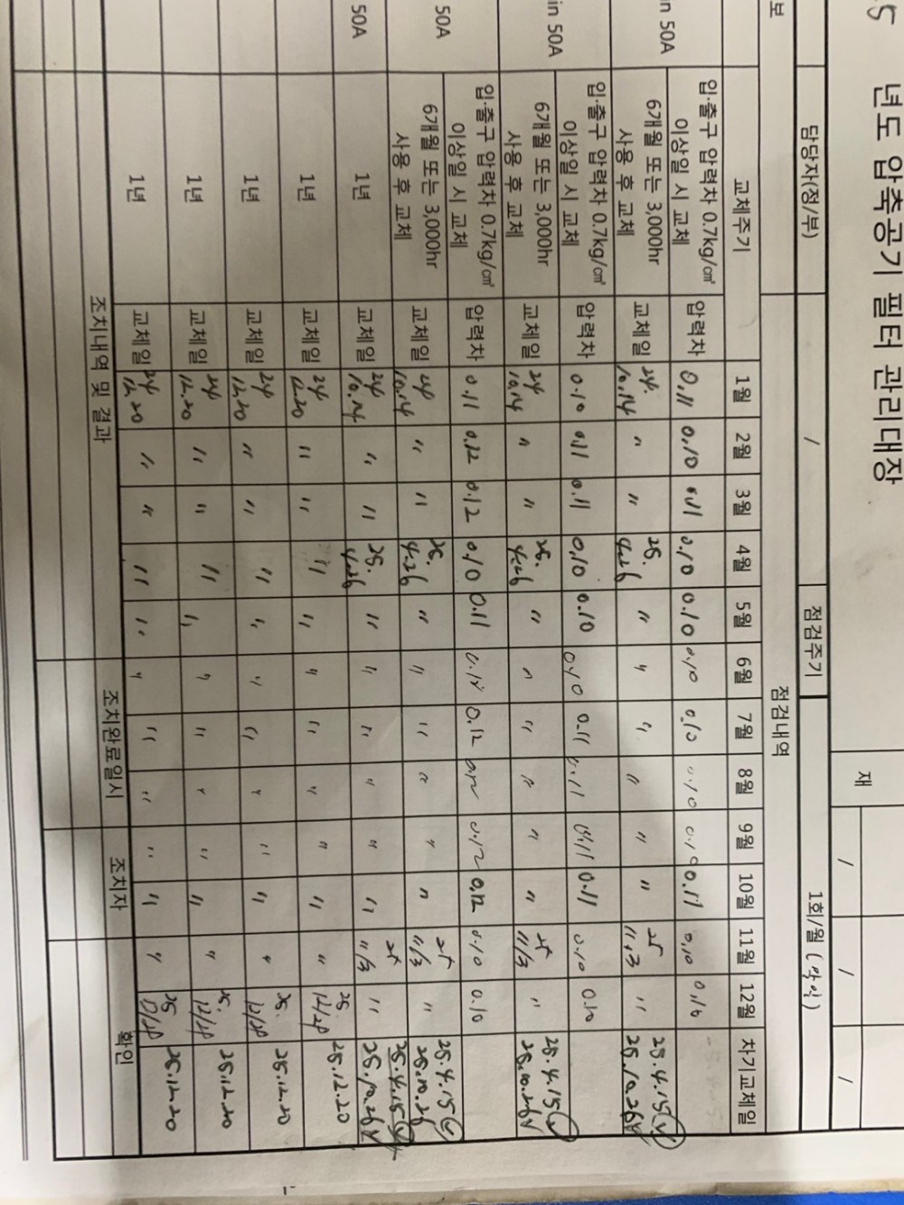 18. 압축 공기의 관리 기준이 구비되어 있으며, 적절히 사용되는가
