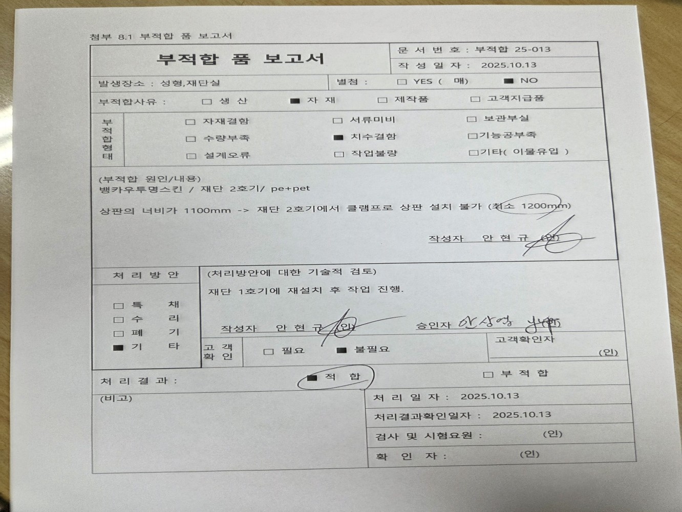 부적합 내용