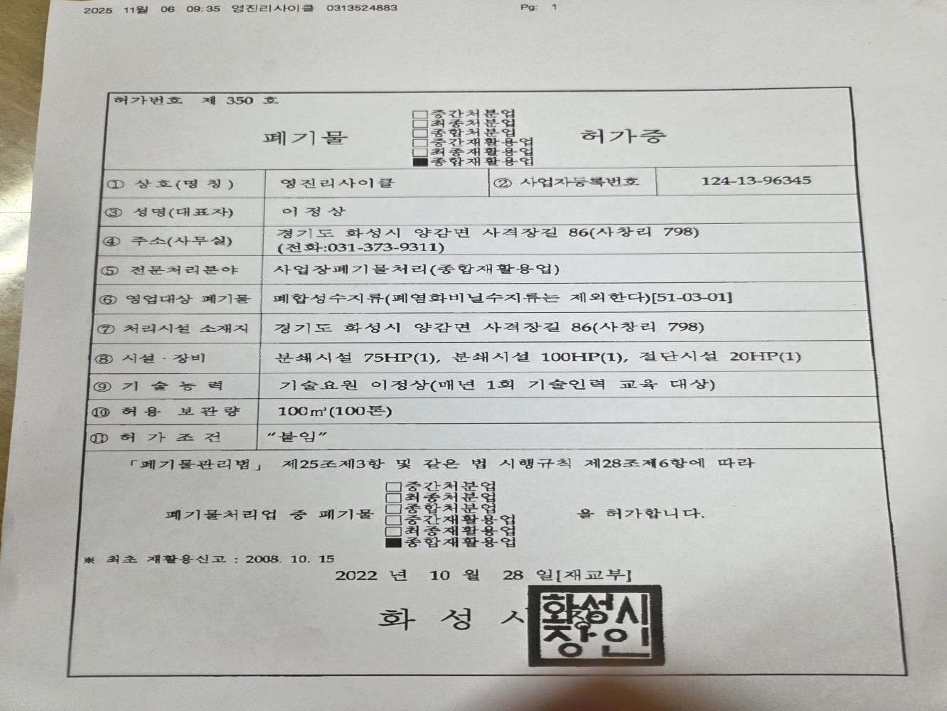 13. 폐기물/폐수는 적절히 처리되며, 관련 기록물이 구비되어 있는가