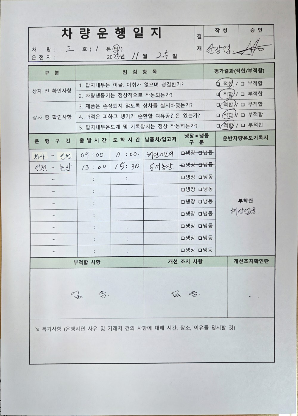 3. 운송 차량은 청결하며, 관련 기록물이 보관되고 있는가