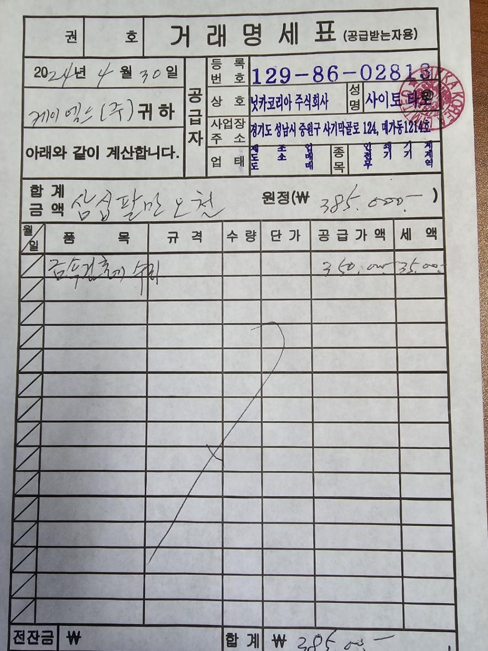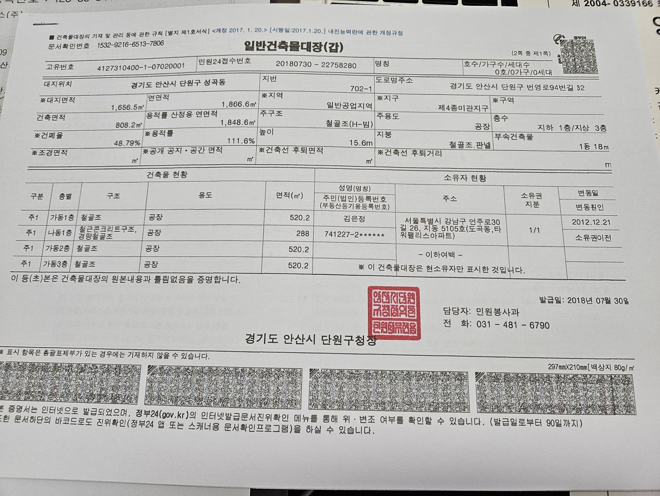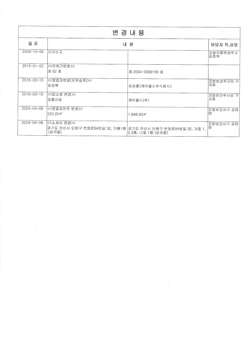 1. 영업 인허가 서류가 구비되어 있으며, 실제와 일치하는가