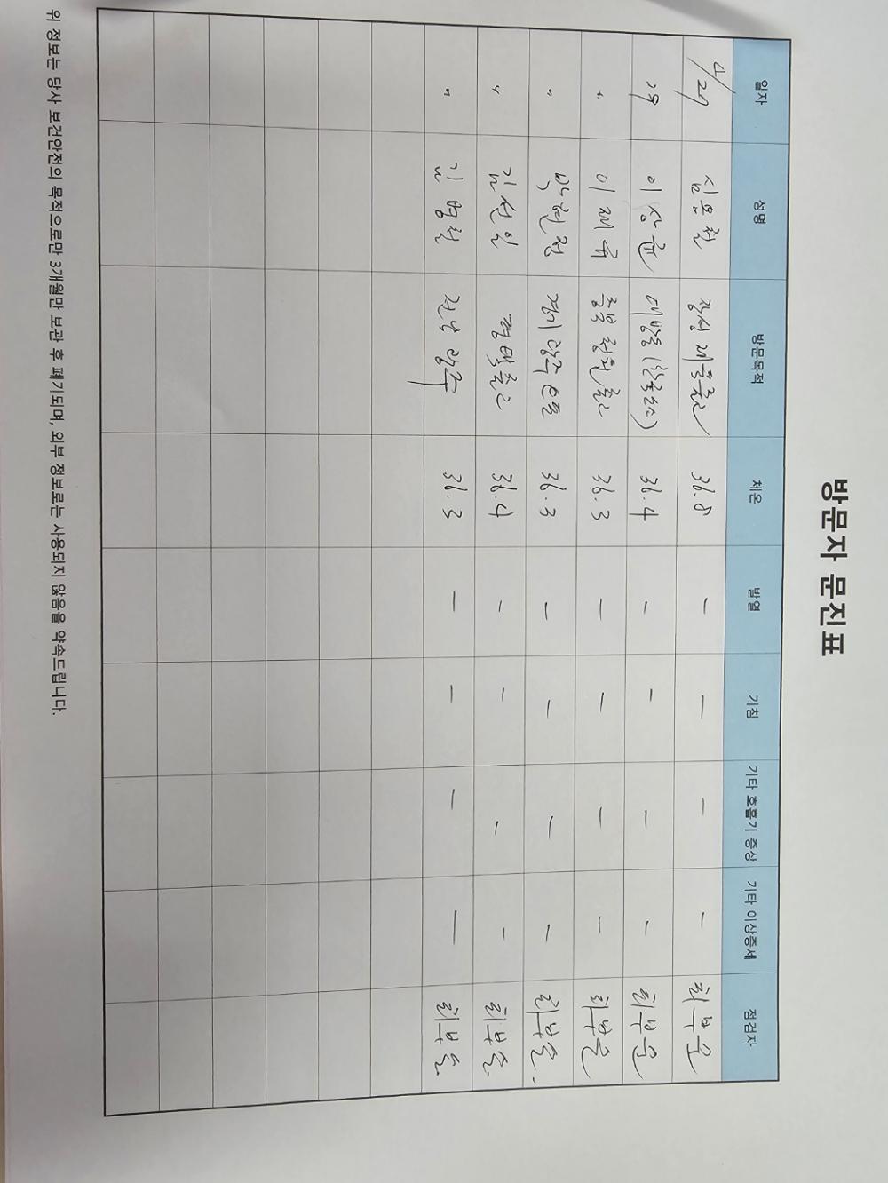 21. 작업장 출입 인원의 건강 상태가 모니터링되며, 관련 기록이 구비되어 있는가