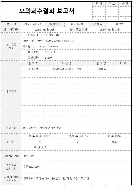 6. 회수 관리 기준이 구비되어 있으며, 모의 회수가 적절히 실시되고 있는가