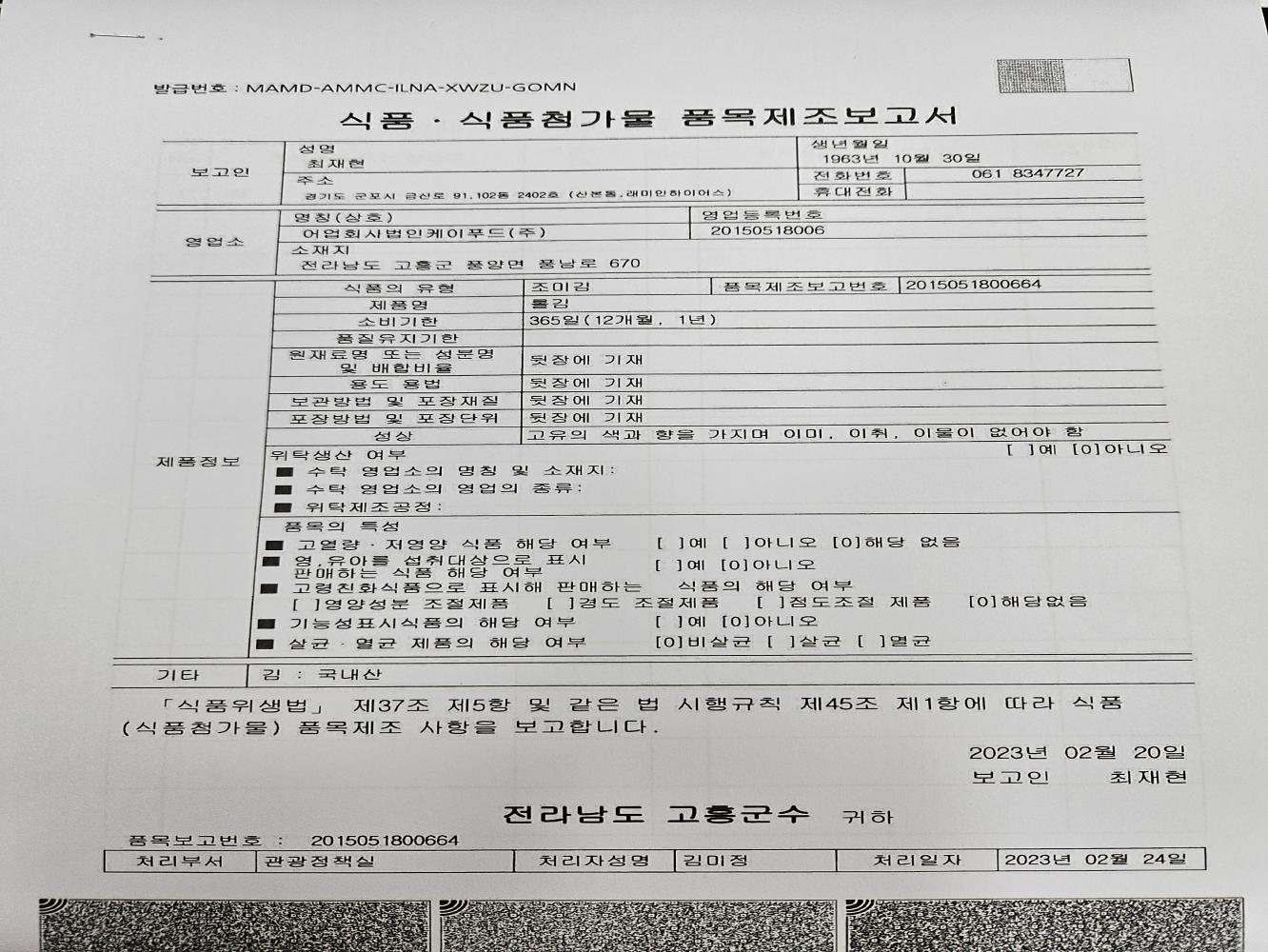 6. 보관/사용 대기 중인 원료 등의 식별표시가 적정한가(반제품, 공정품 포함)