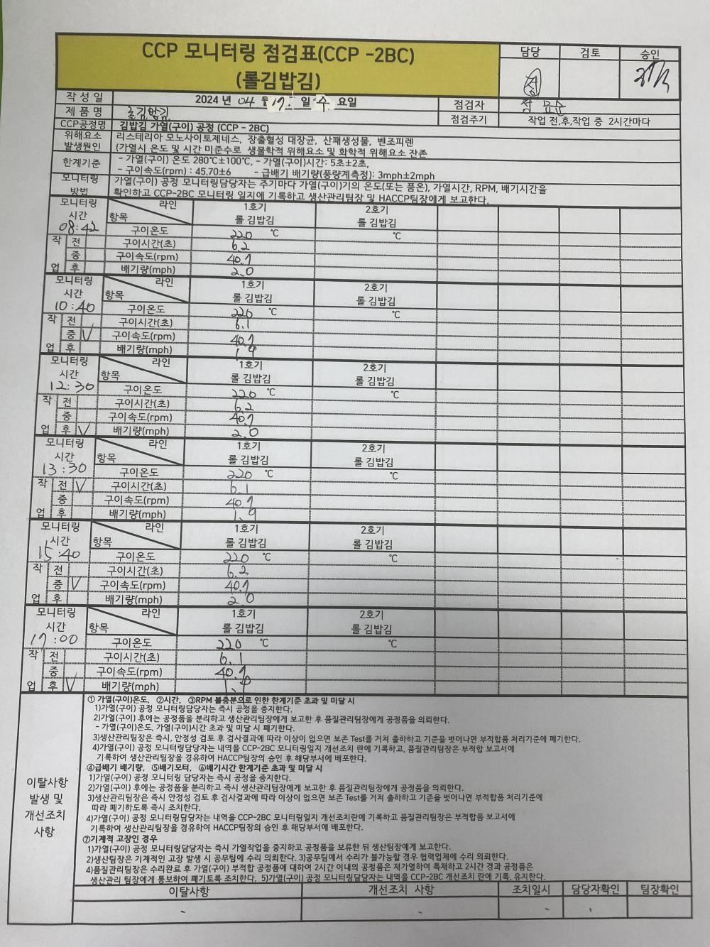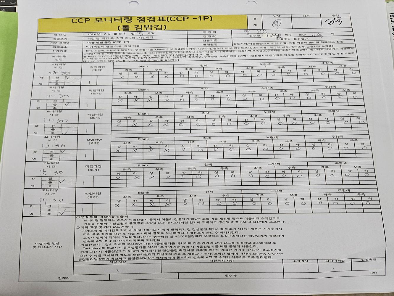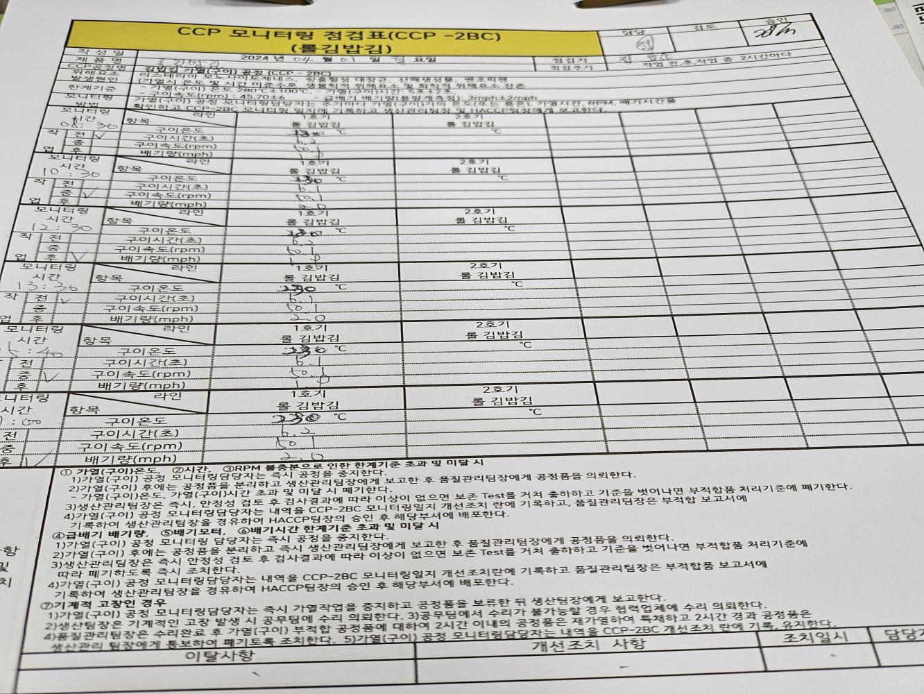 32. CCP 모니터링 및 개선 조치가 이행되고 있는가